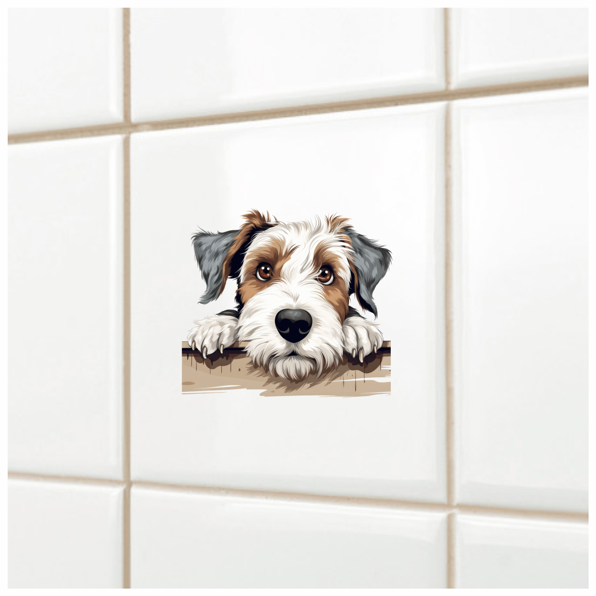 Brown White Dog Terrier Fence Vinyl Sticker Decal