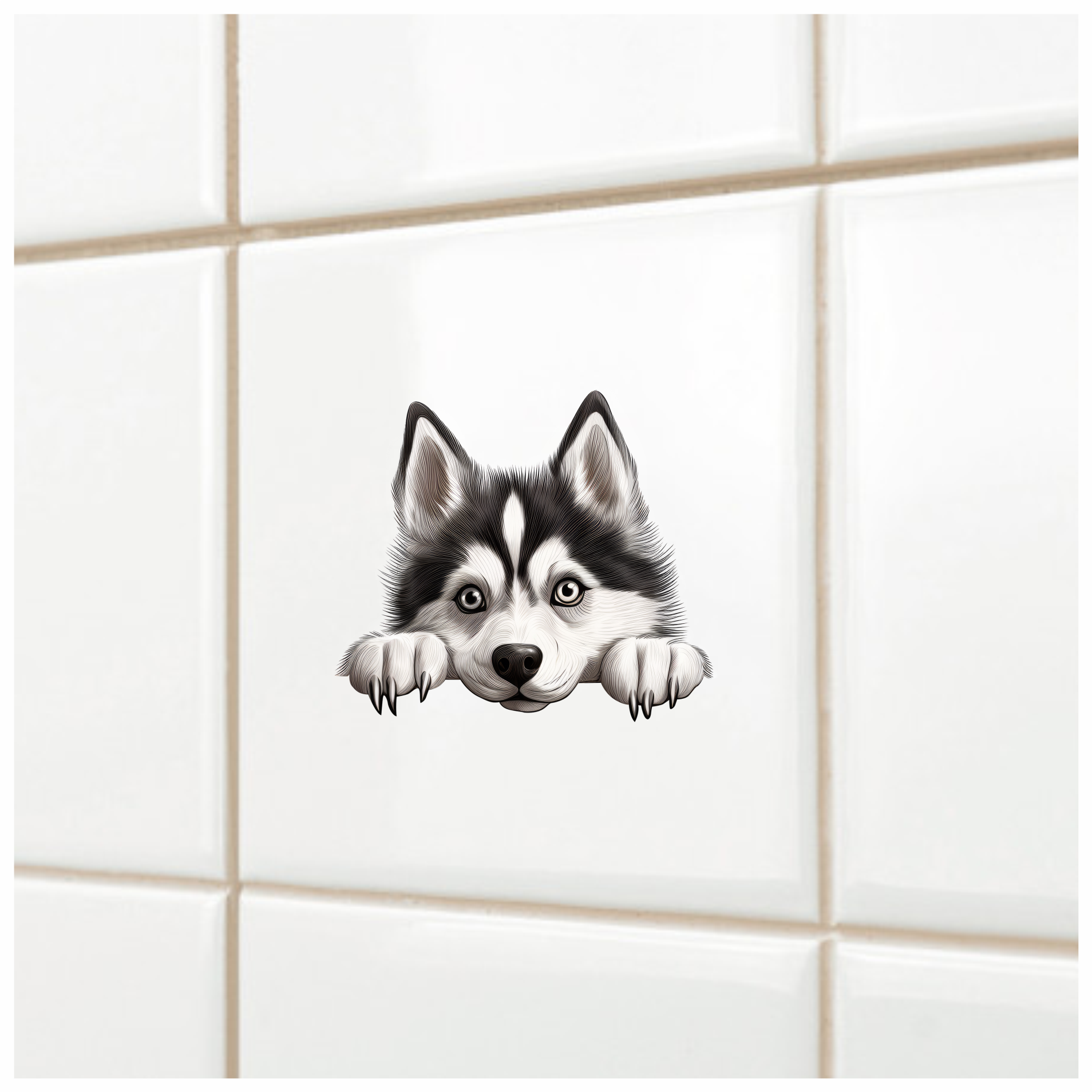 Black White Husky Dog Cute Vinyl Sticker Decal