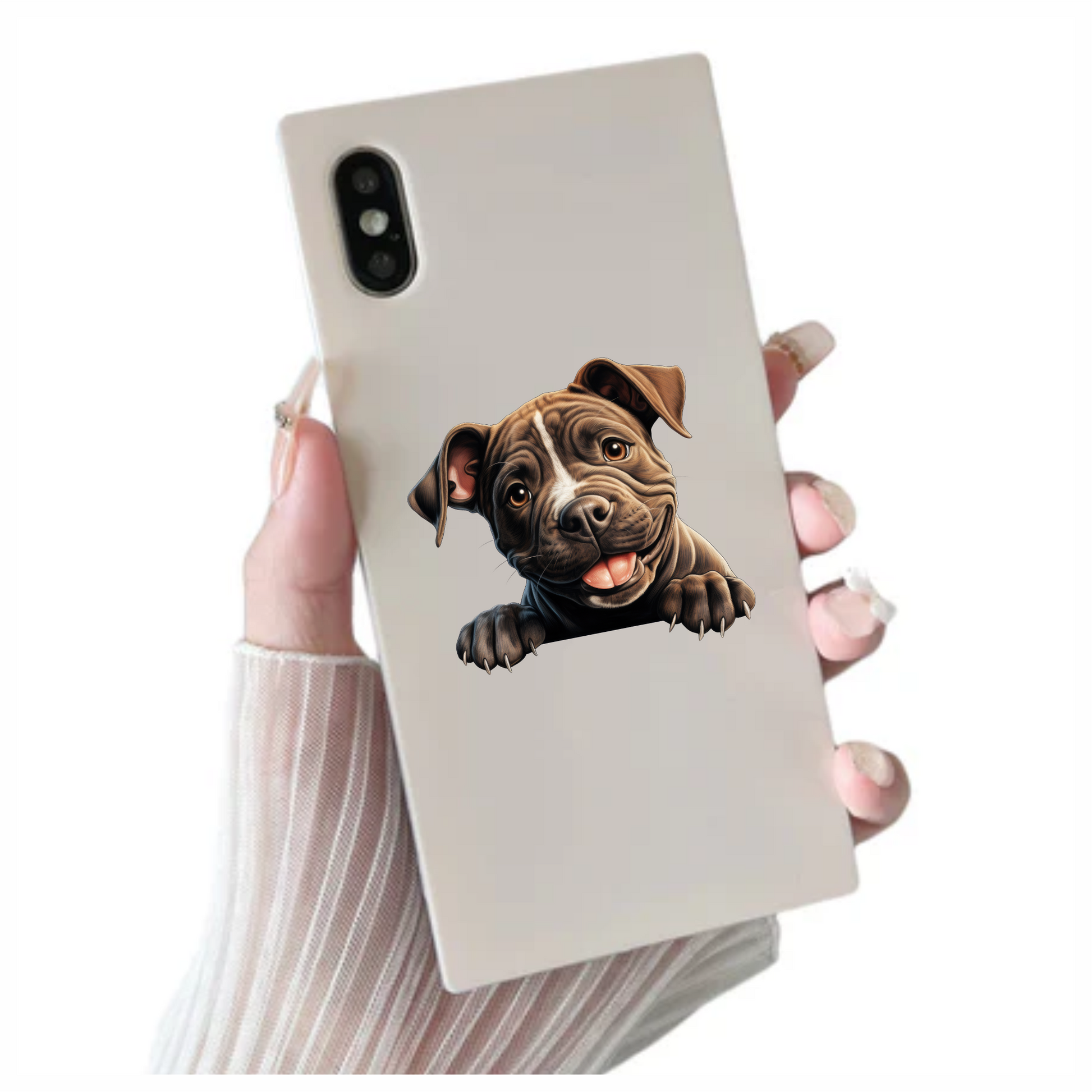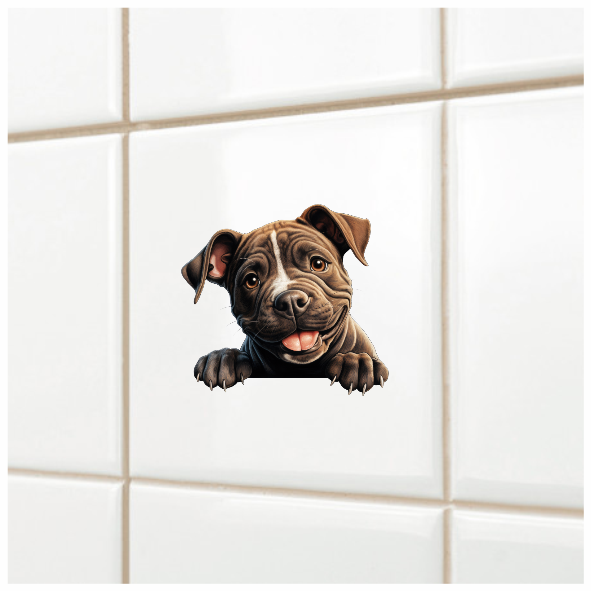 Brown Puppy Bulldog Smiling Cute Vinyl Sticker Decal