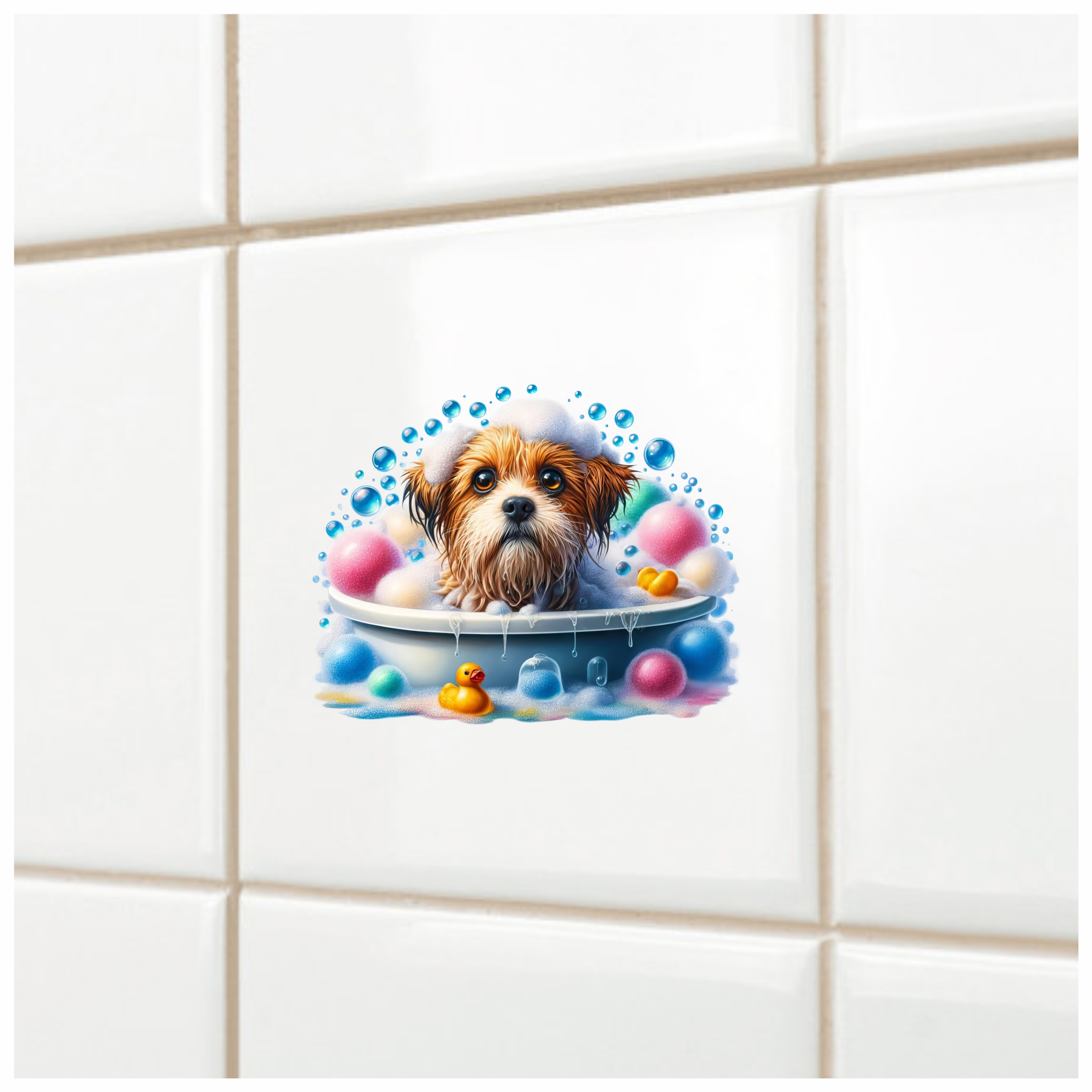 Brown Dog Bubble Bath Tub Vinyl Sticker Decal