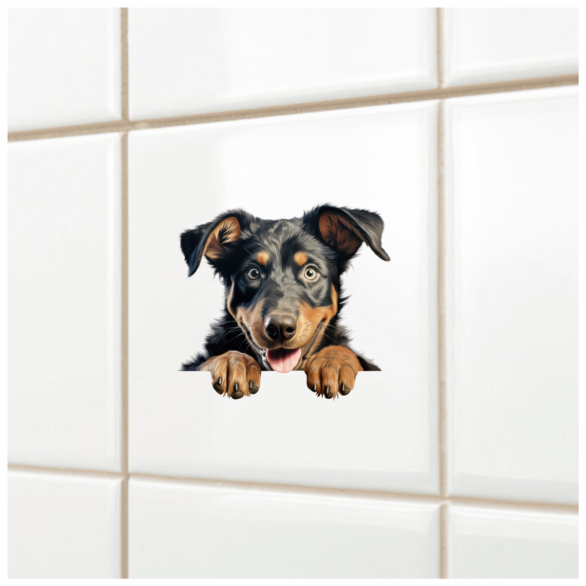 Black Brown Dog Puppy Happy Vinyl Sticker Decal