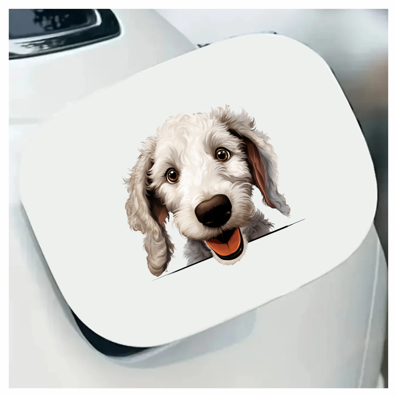 White Dog Poodle Happy Face Vinyl Sticker Decal