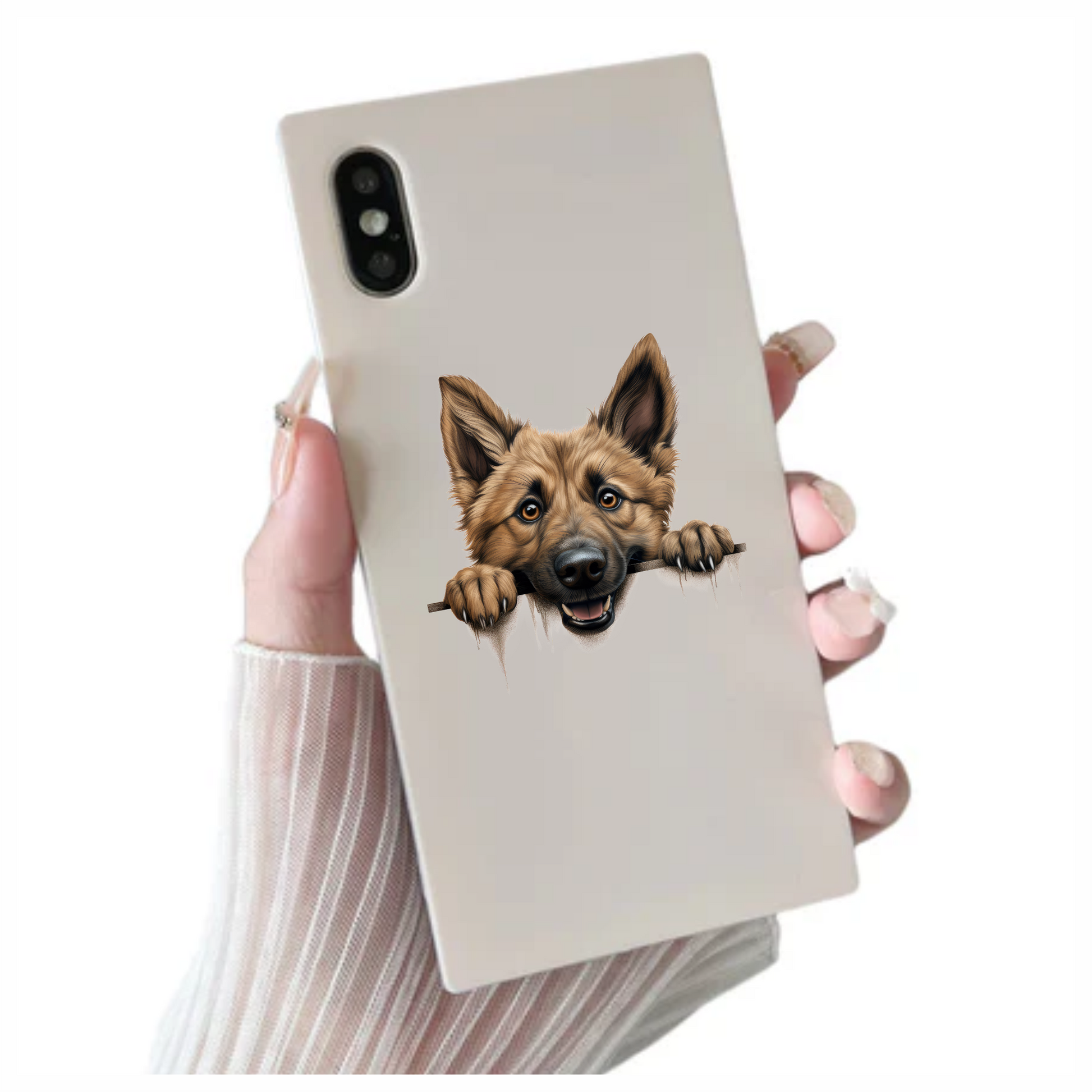 Brown Dog German Shepherd Smiling Face Vinyl Sticker Decal