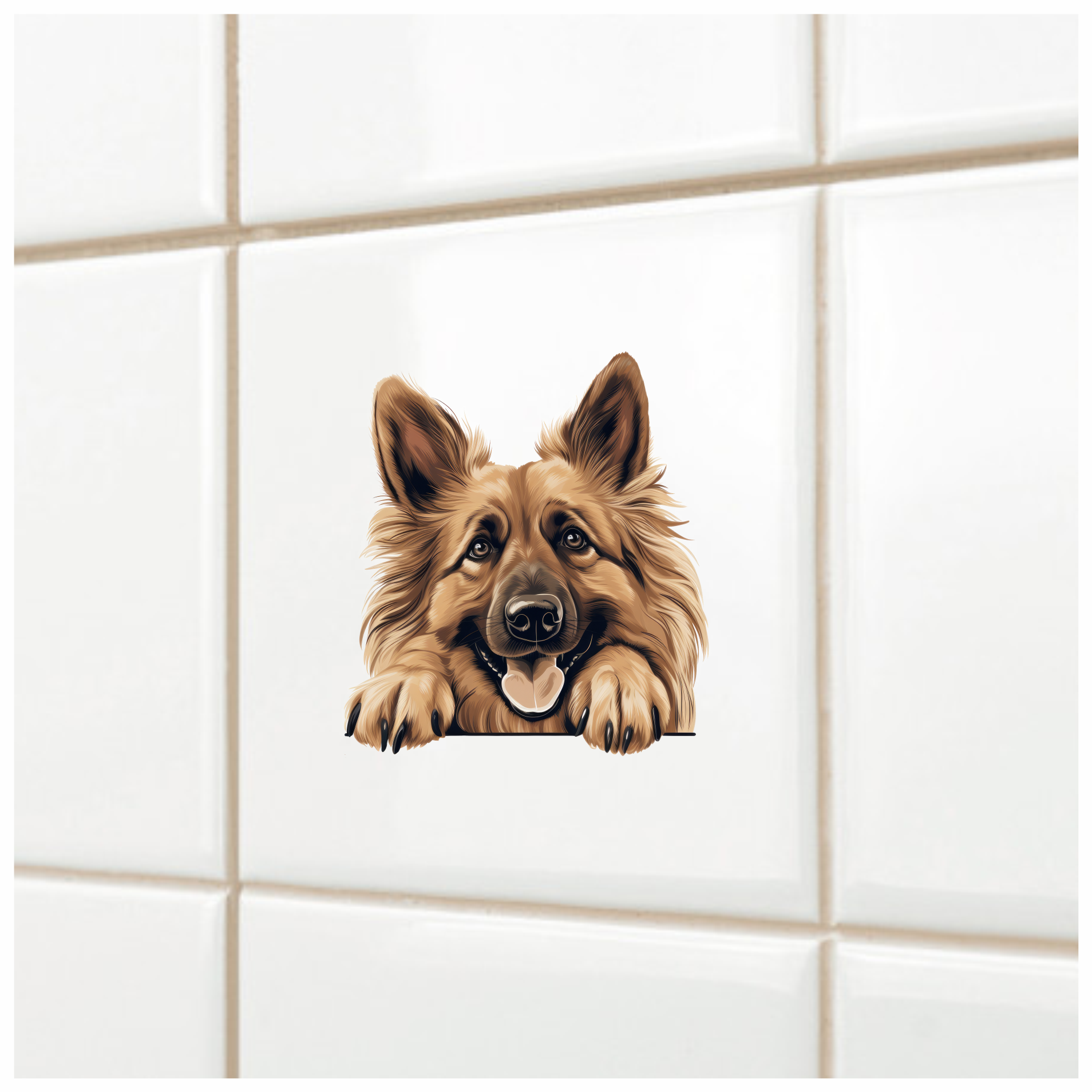 Brown Dog German Shepherd Happy Face Vinyl Sticker Decal