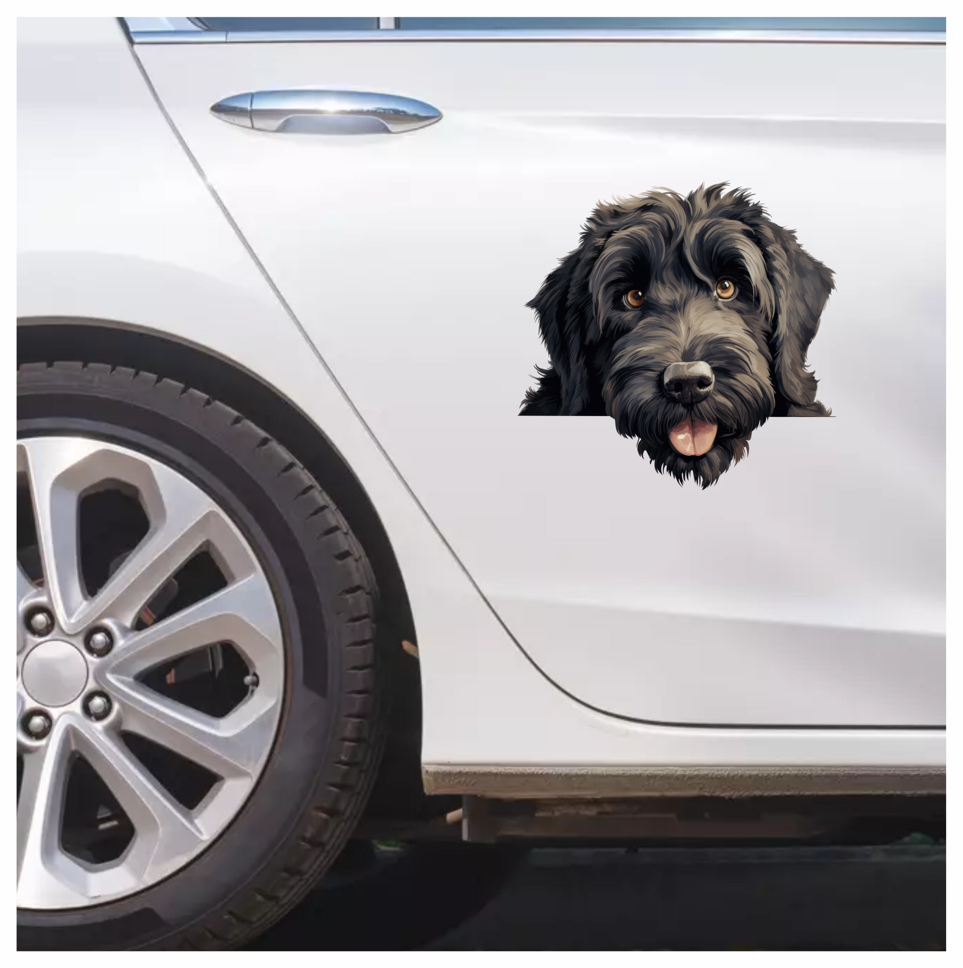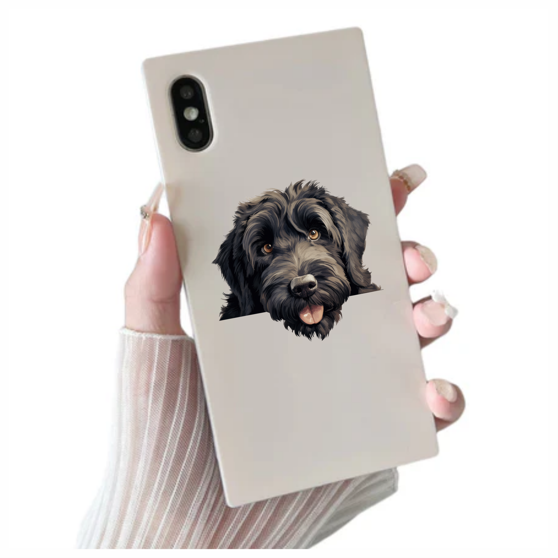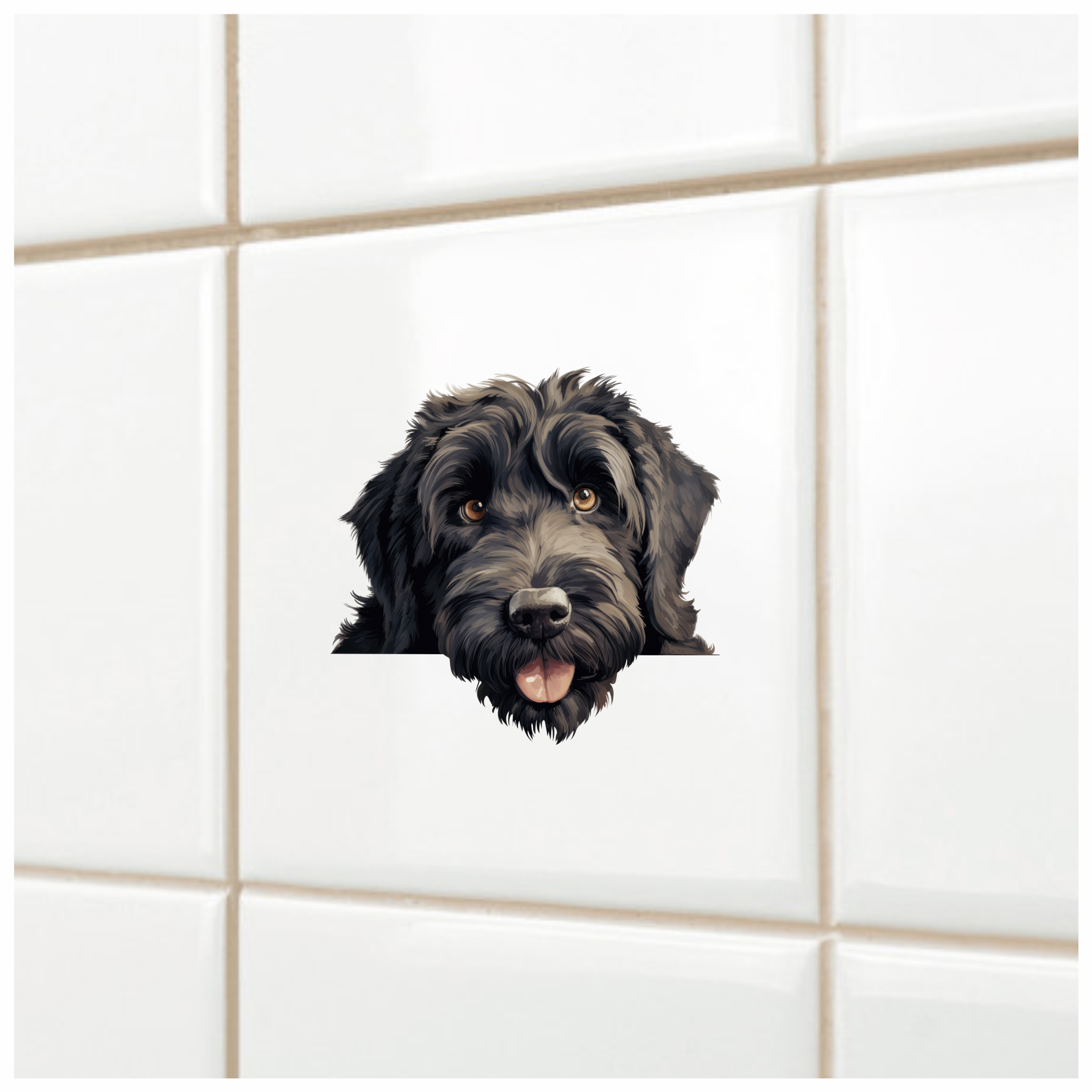 Black Dog Fluffy Labradoodle Tongue Vinyl Sticker Decal