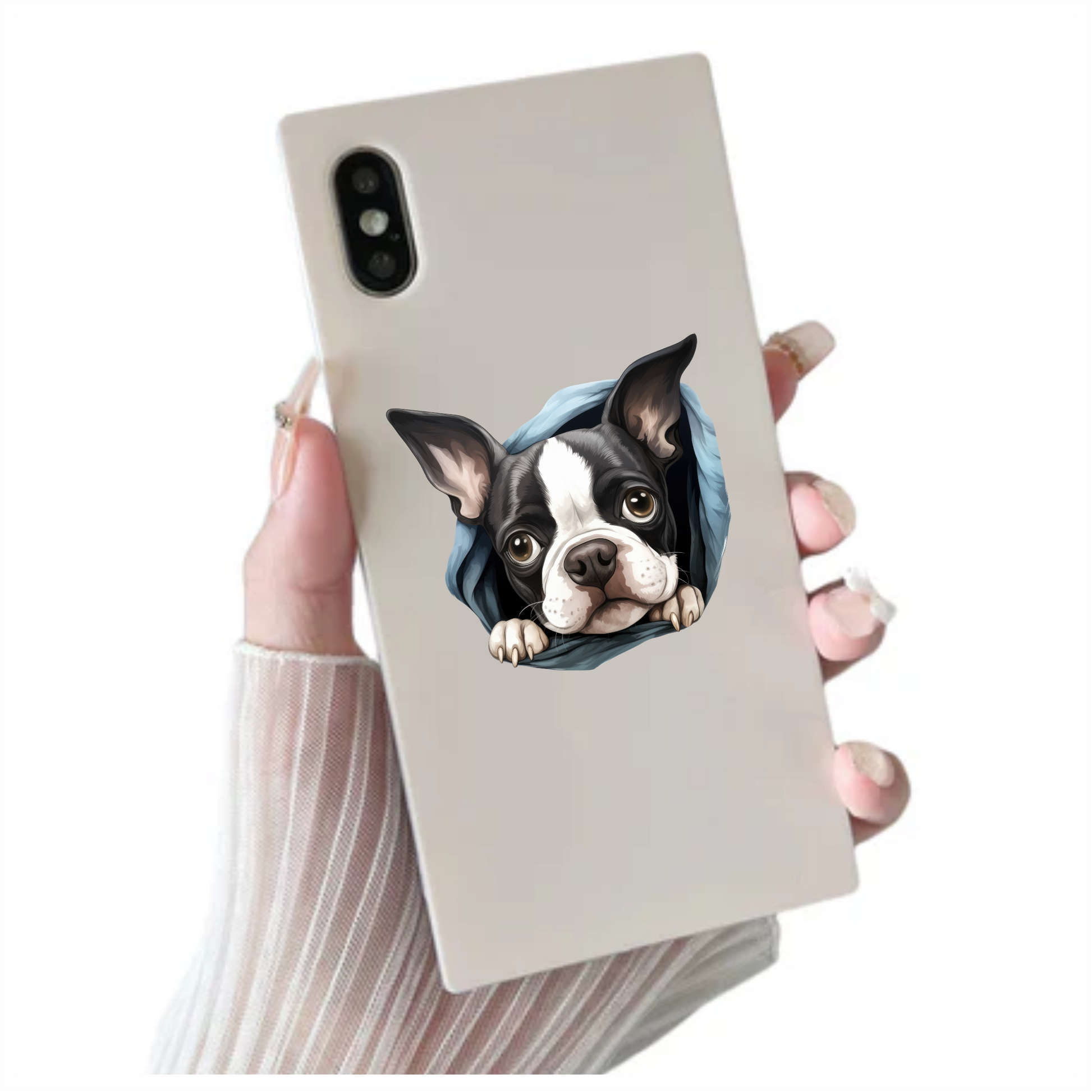 Black White Boston Terrier Blanket Vinyl Sticker Decal