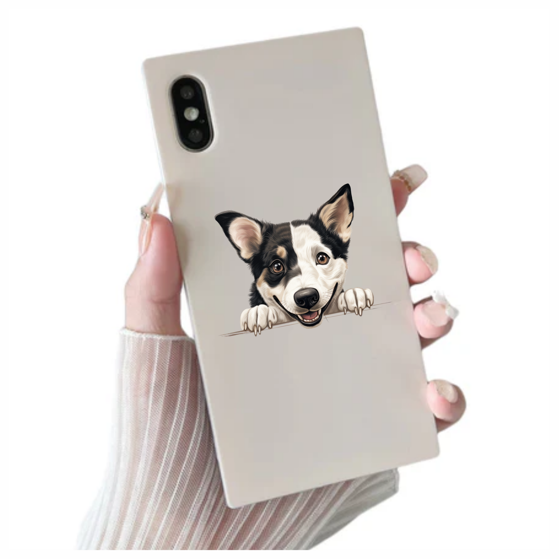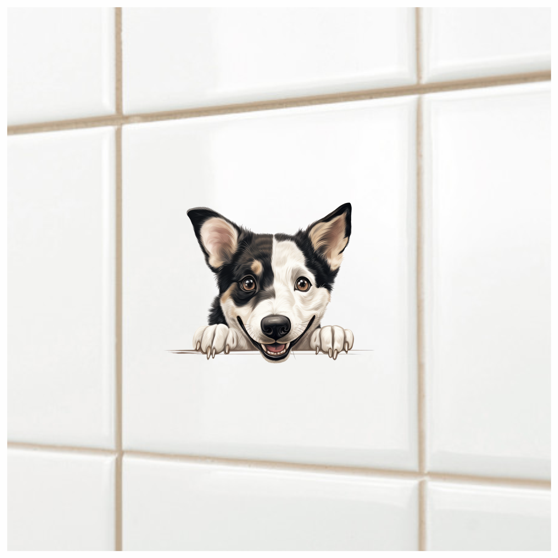 Black White Dog Corgi Smiling Vinyl Sticker Decal