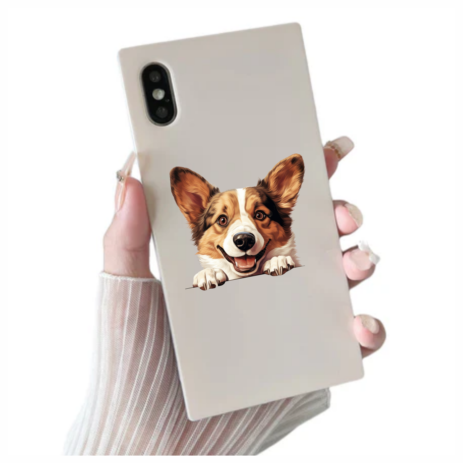 Brown White Corgi Dog Happy Face Vinyl Sticker Decal