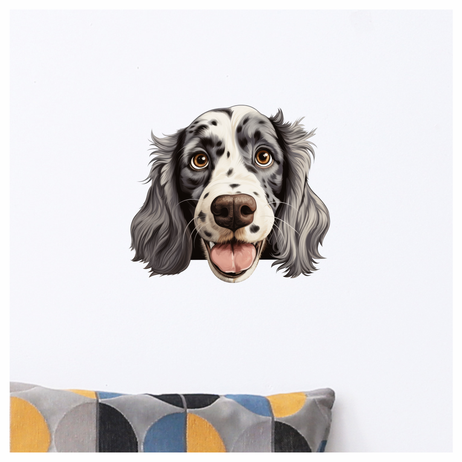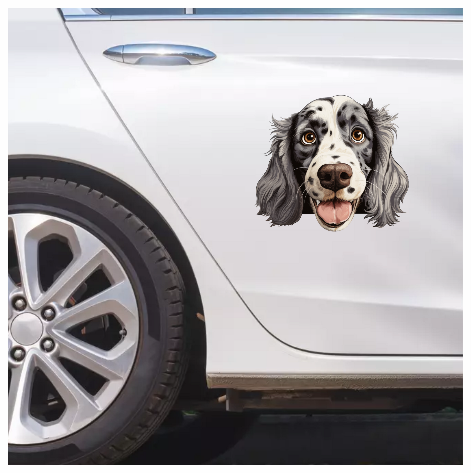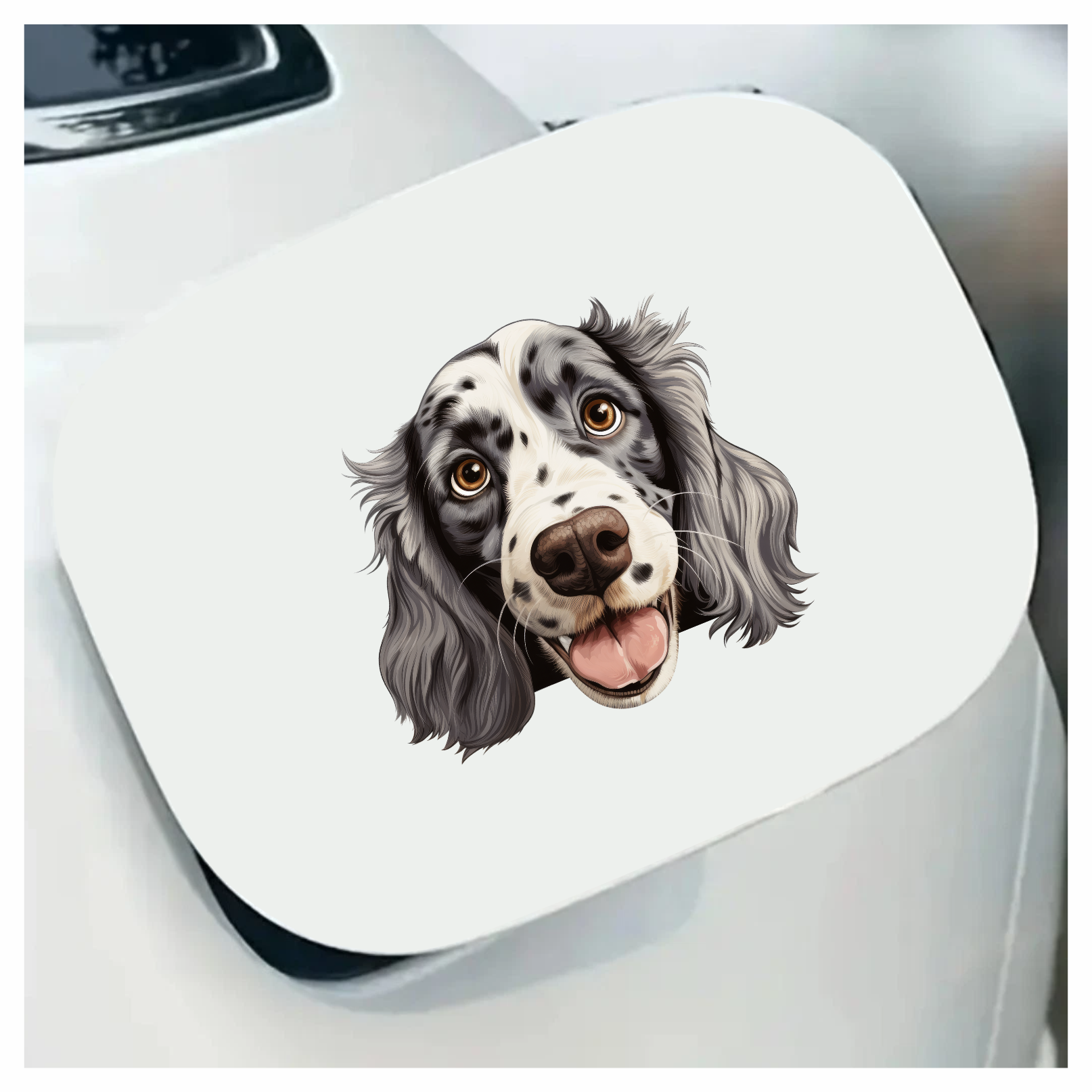 White Black Dog Spaniel Happy Face Vinyl Sticker Decal