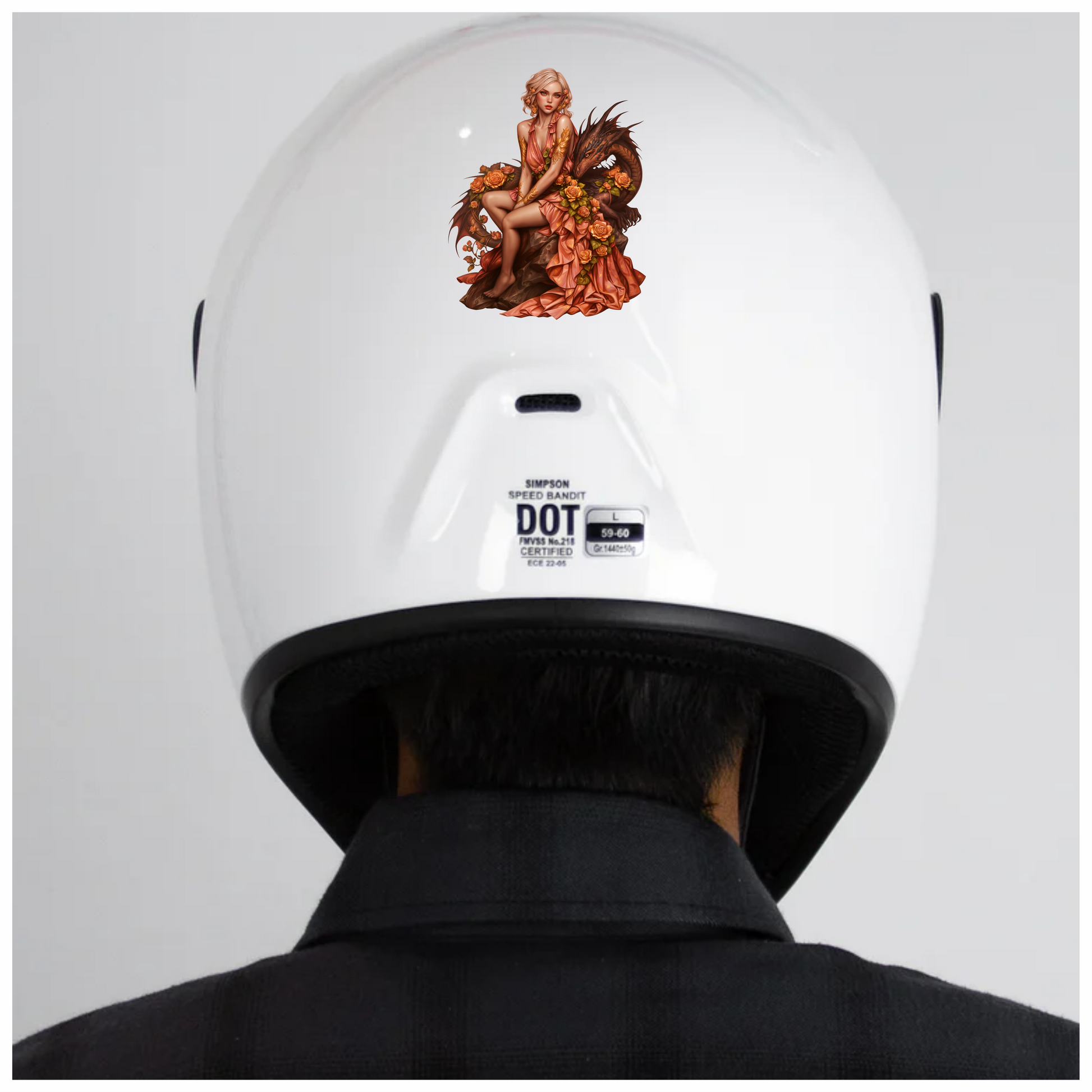 Woman Peach Dragon Roses Sitting Vinyl Sticker Decal