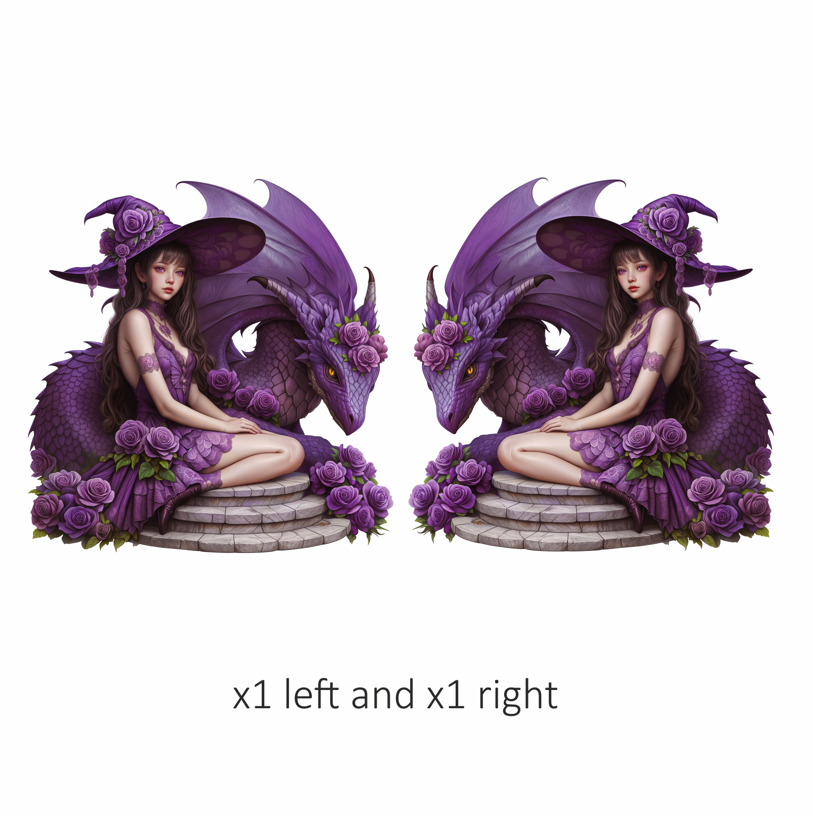 Purple Witch Girl Dragon Roses Vinyl Sticker Decal