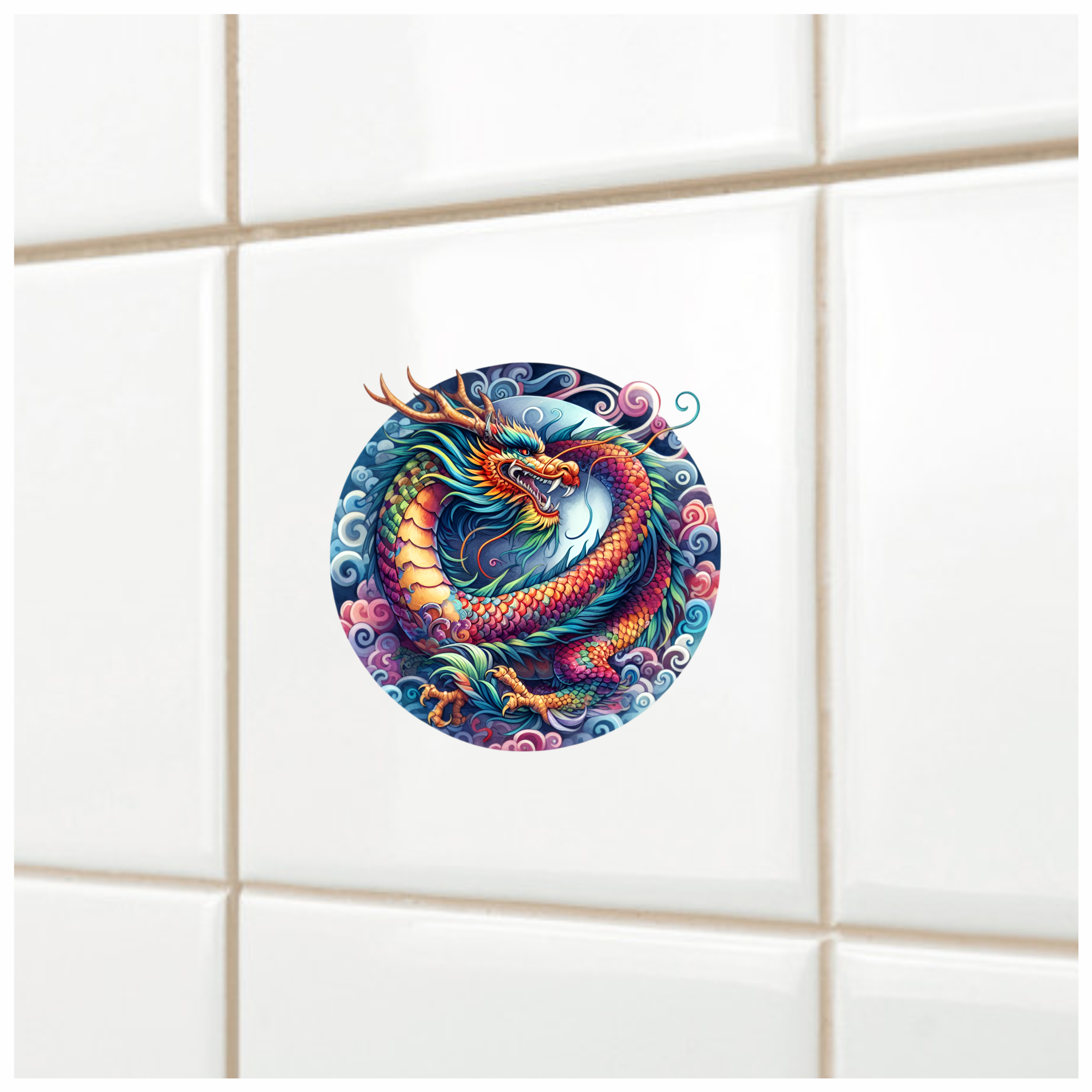 Dragon Rainbow Circle Clouds Fierce Vinyl Sticker Decal
