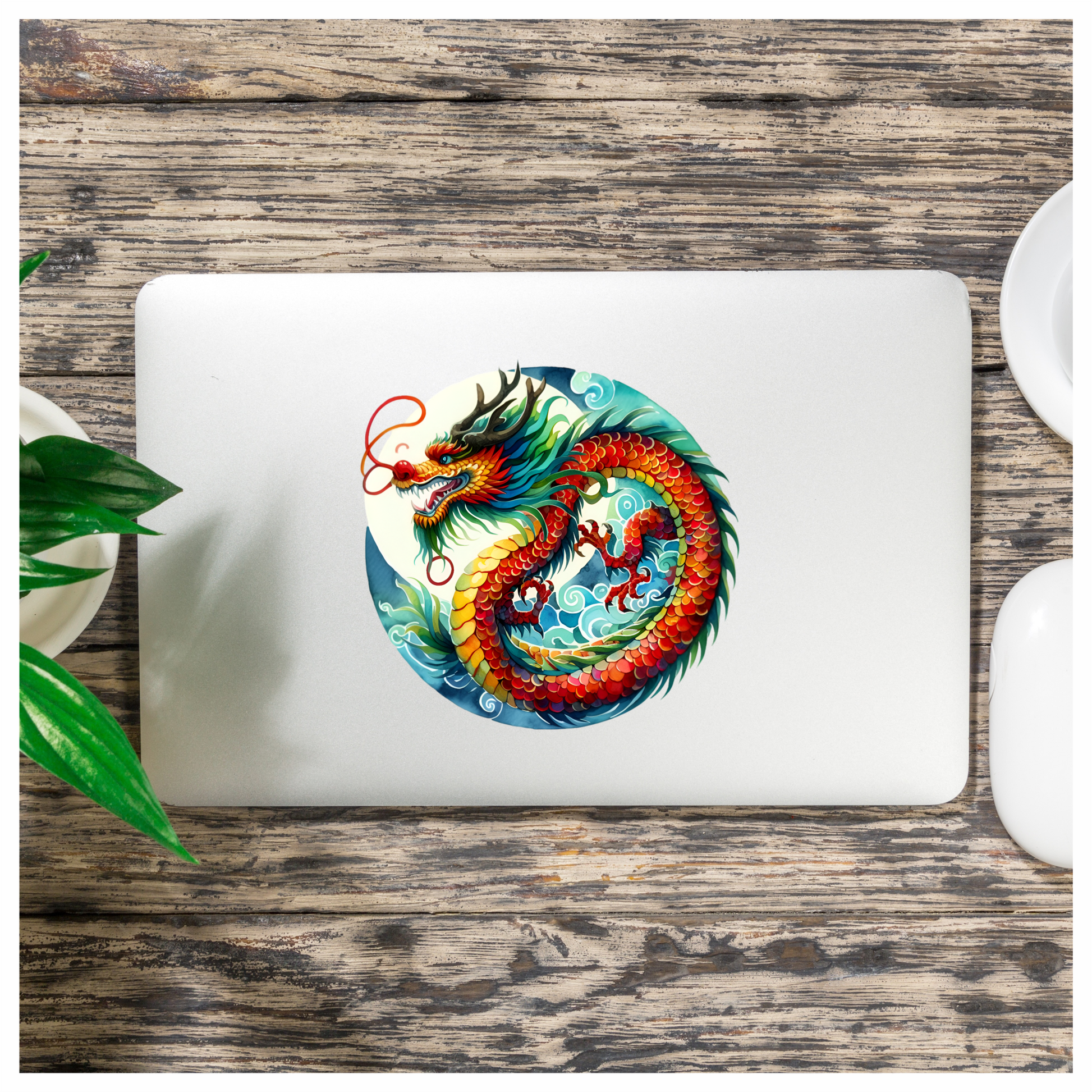 Red Dragon Circle Waves Ocean Vinyl Sticker Decal