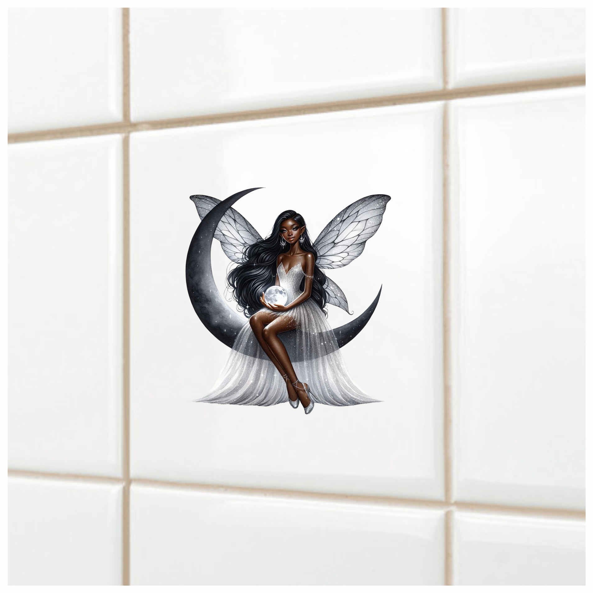 Fairy Moon White Dress Wings Vinyl Sticker Decal