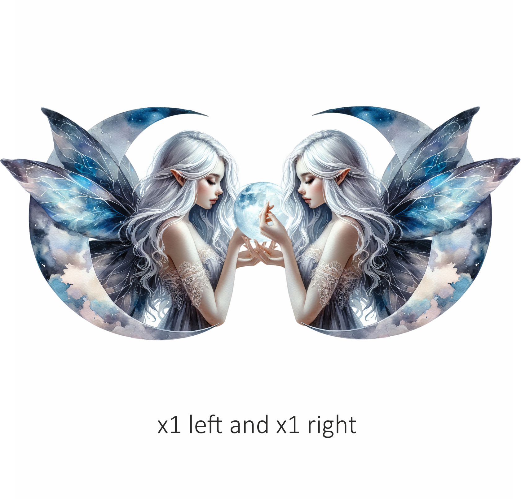 Silver Fairy Moon Light Wings Vinyl Sticker Decal
