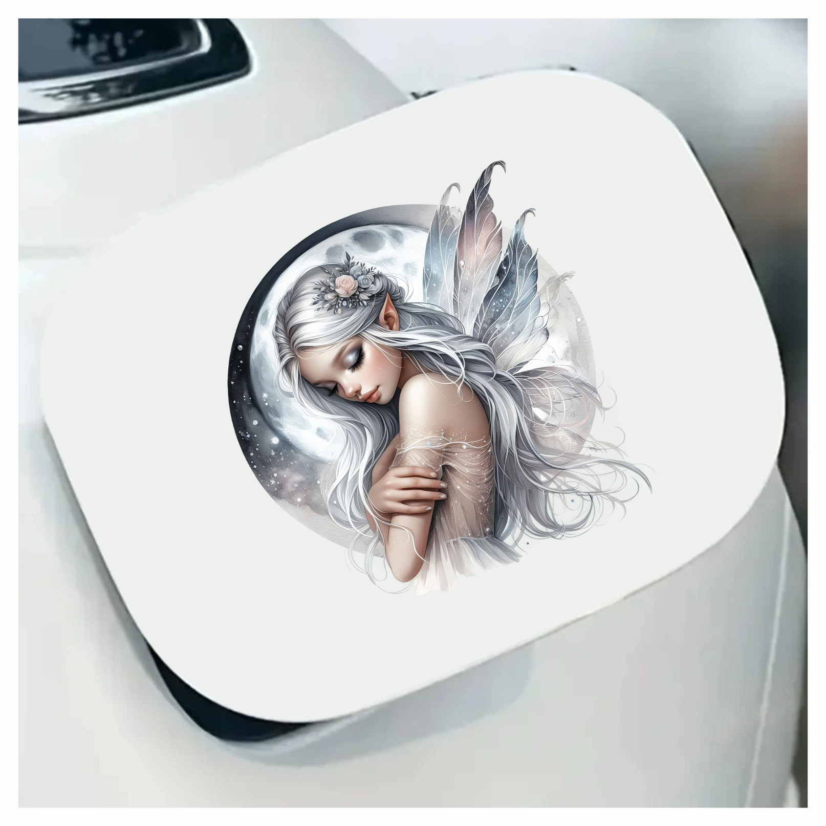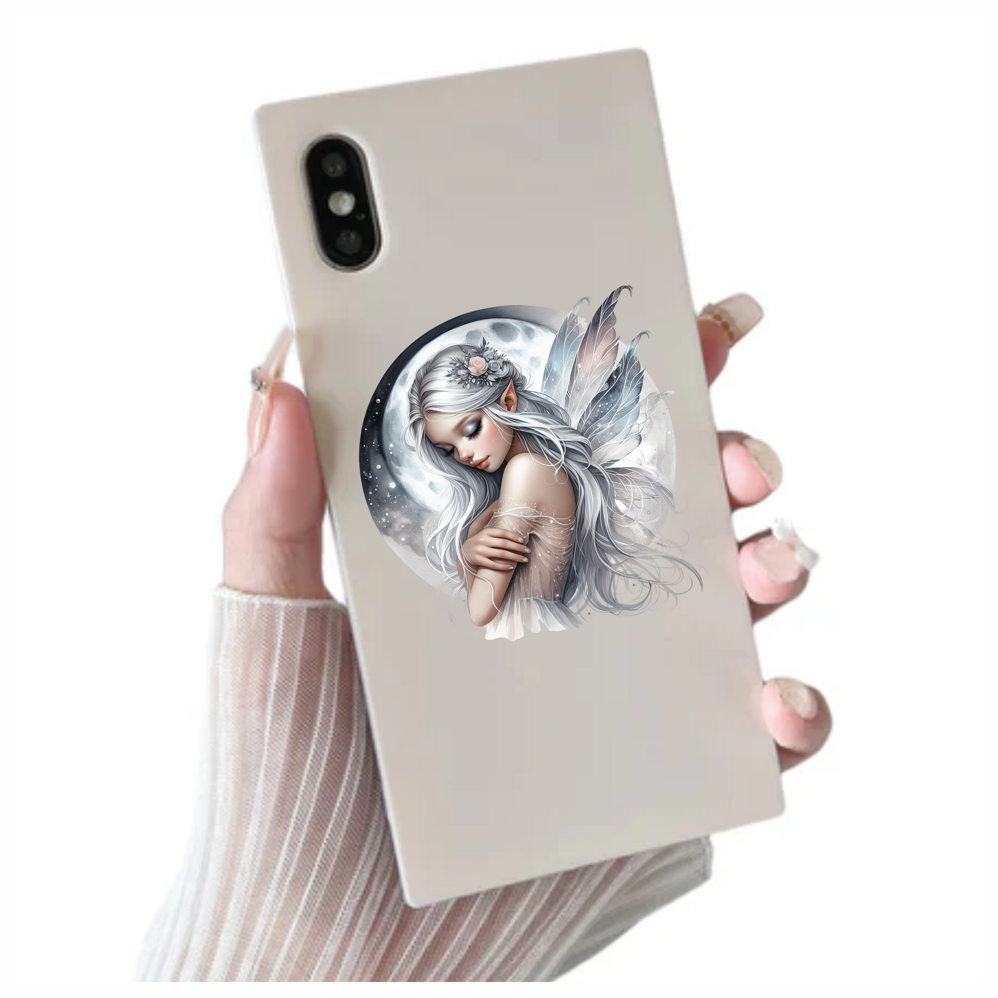 Silver Fairy Moon Wings Flowers Vinyl Sticker Decal