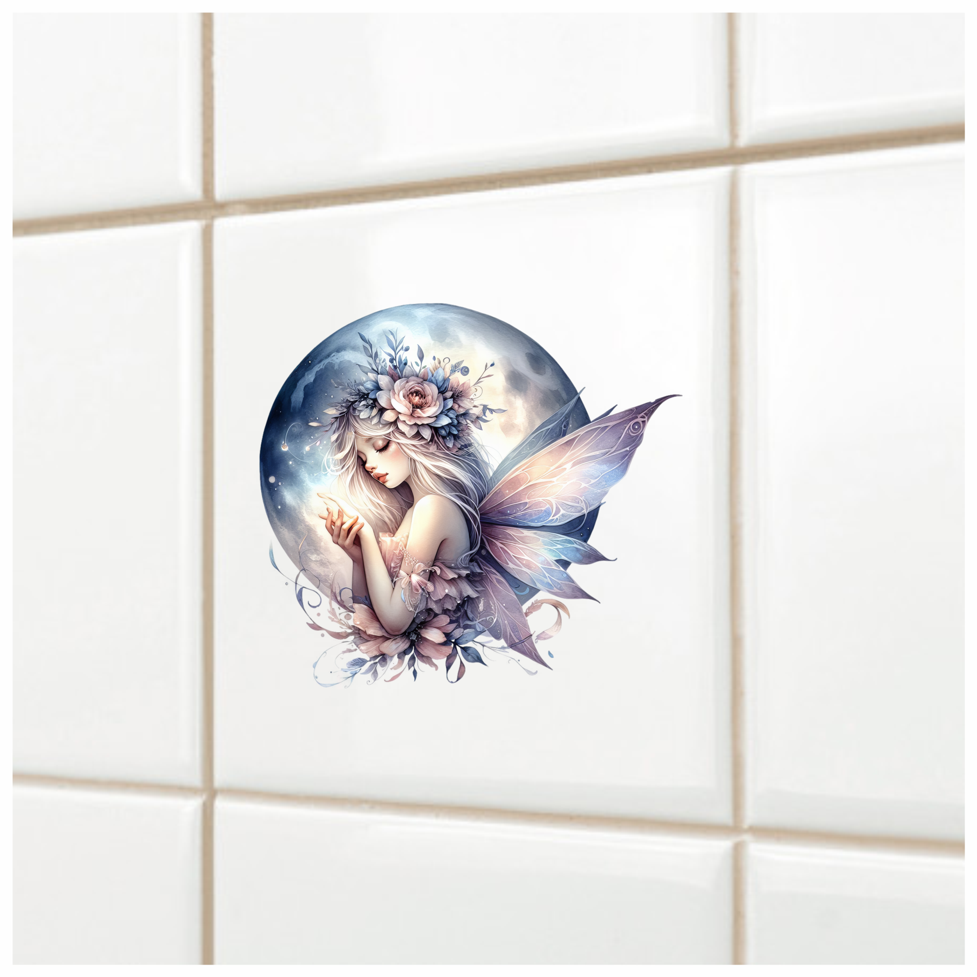 Fairy Moon Flower Pink Wings Vinyl Sticker Decal
