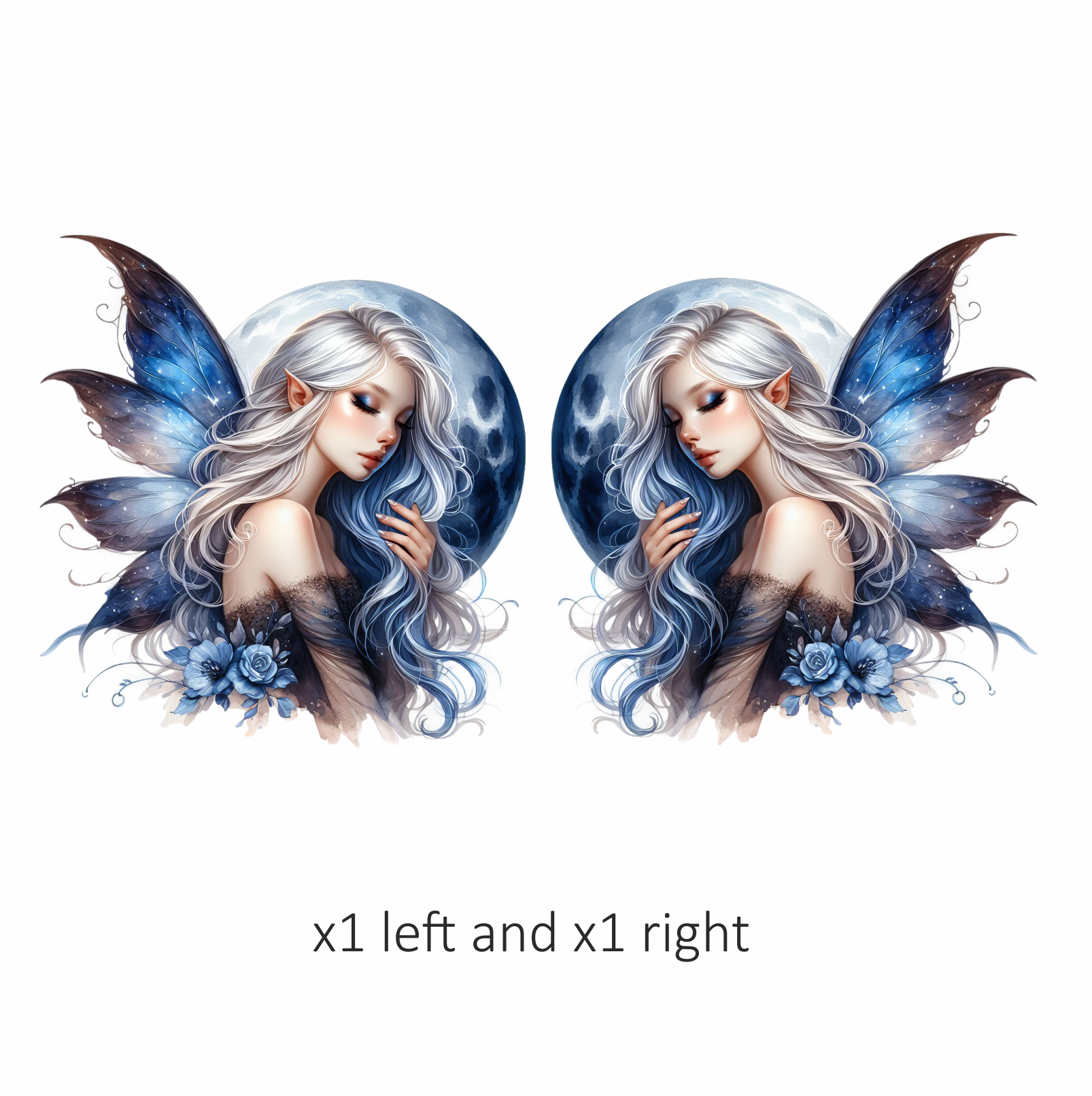 Blue Moon Fairy Woman Flowers Vinyl Sticker Decal