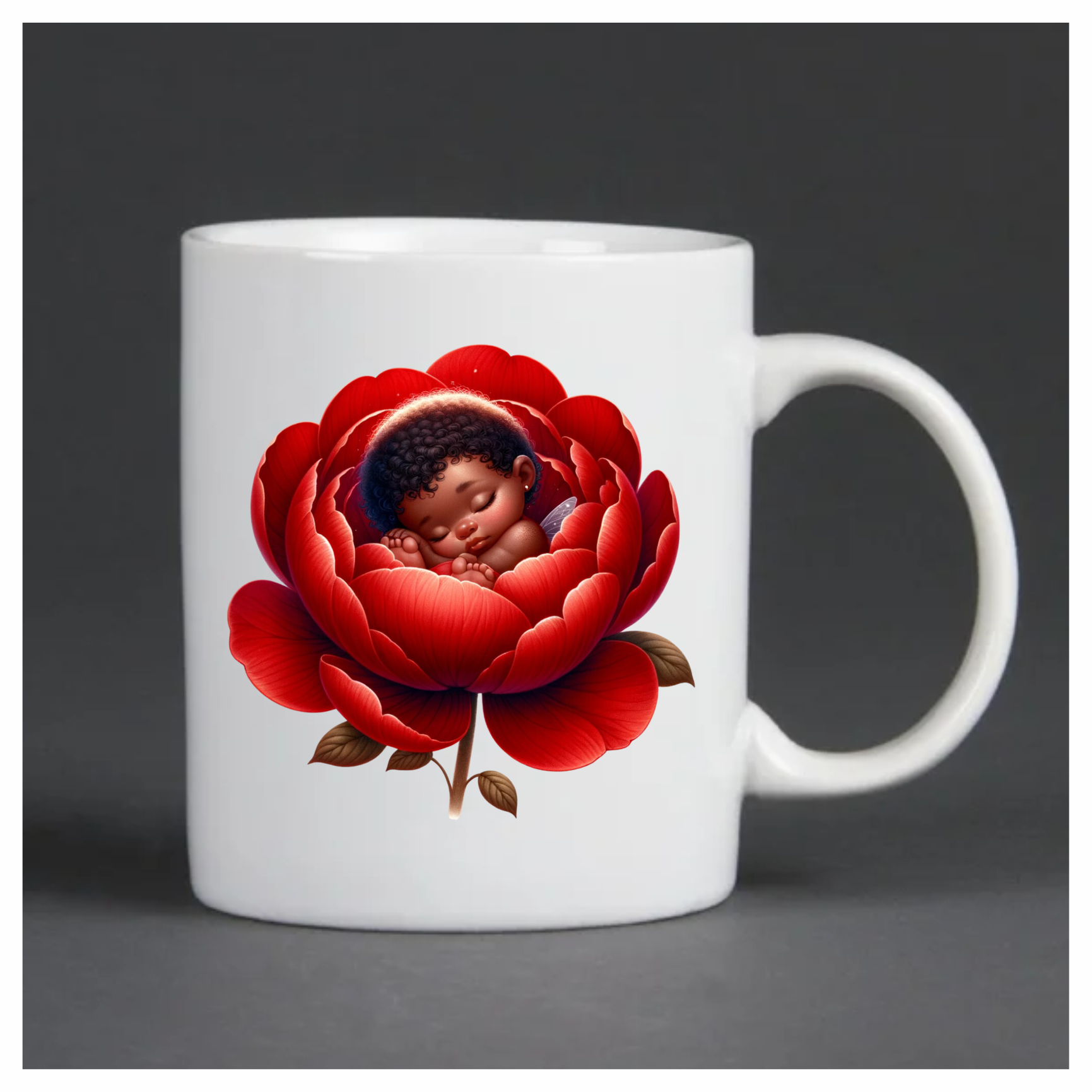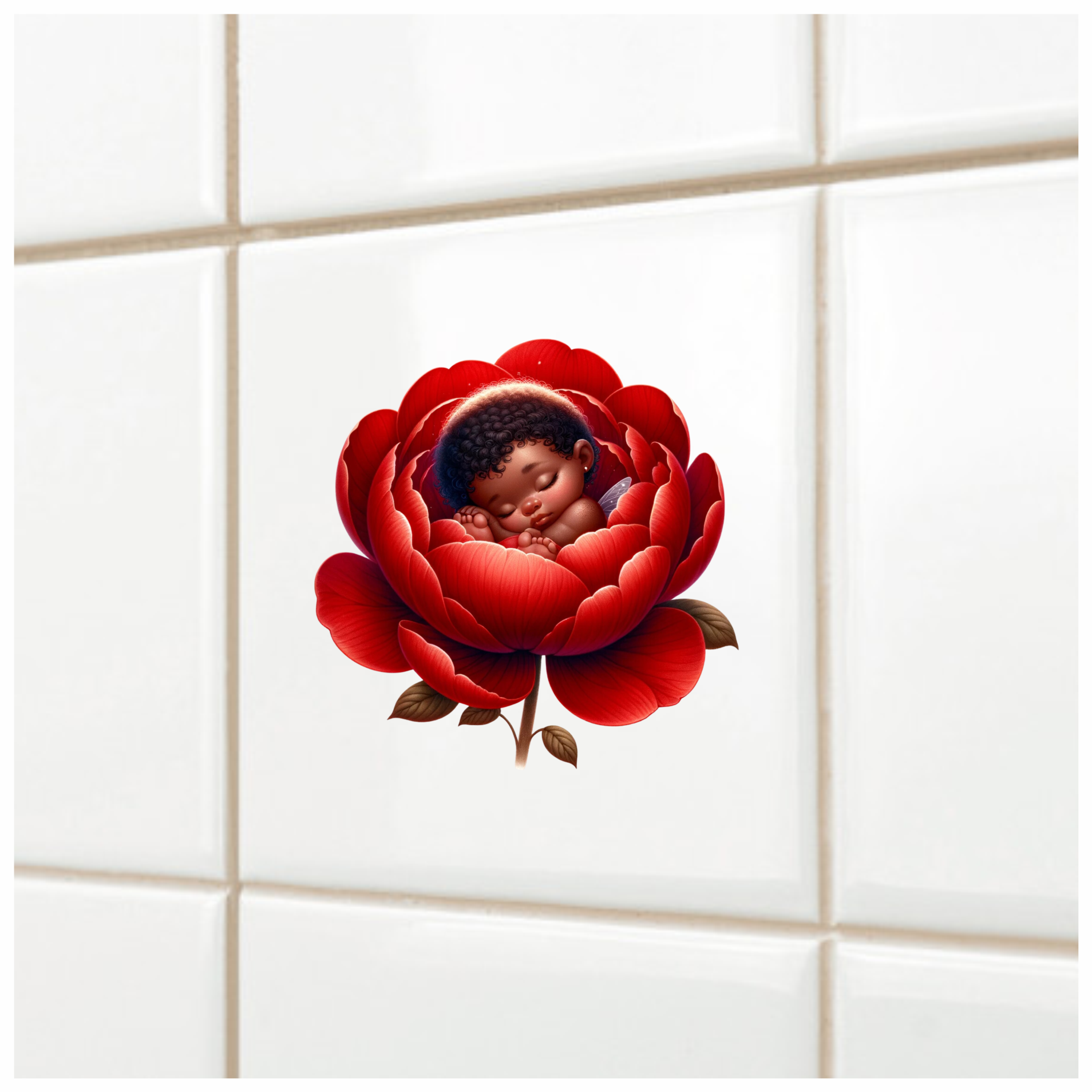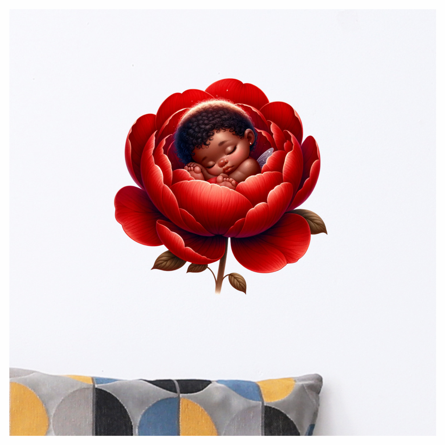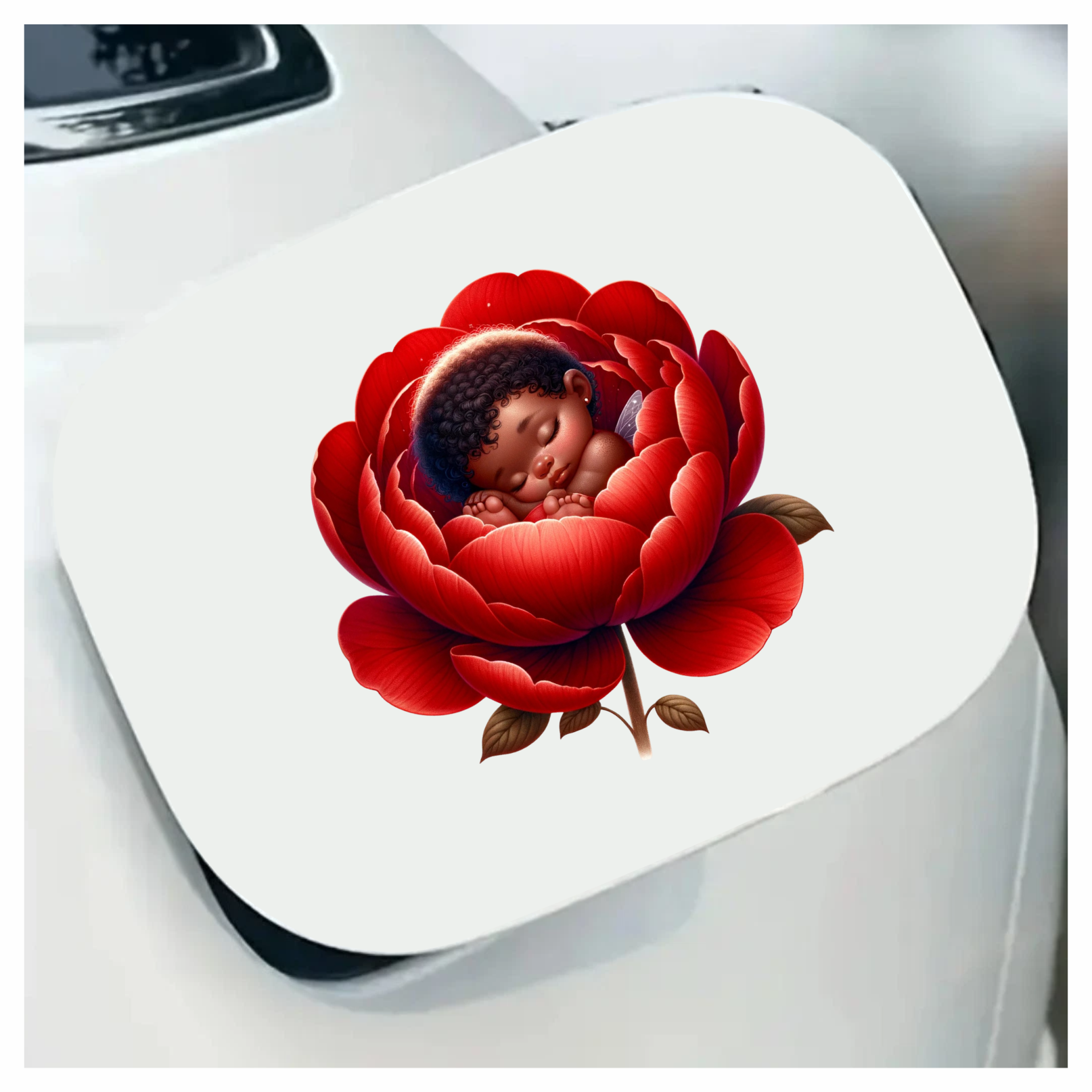 Baby Sleeping Red Flower Fairy Vinyl Sticker Decal