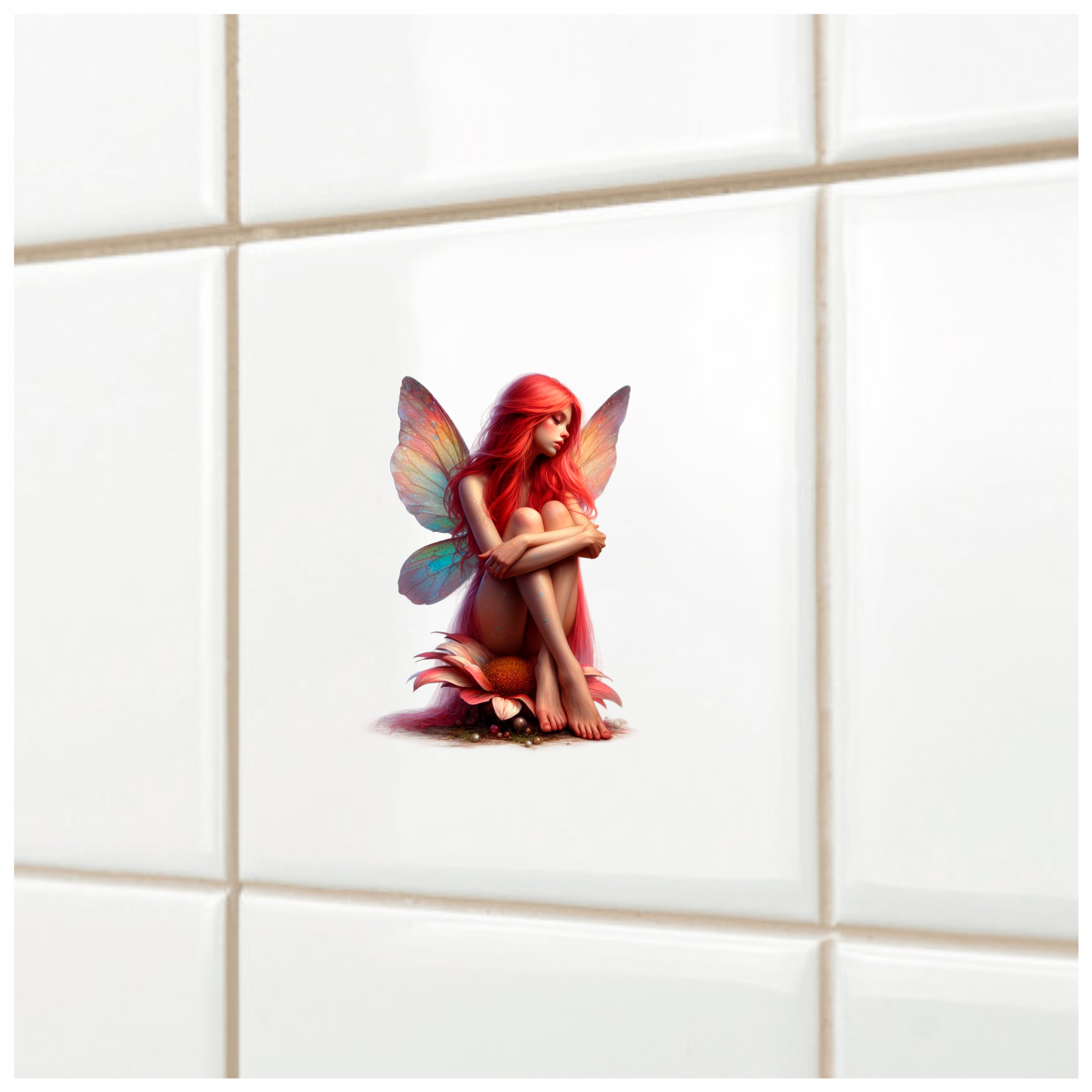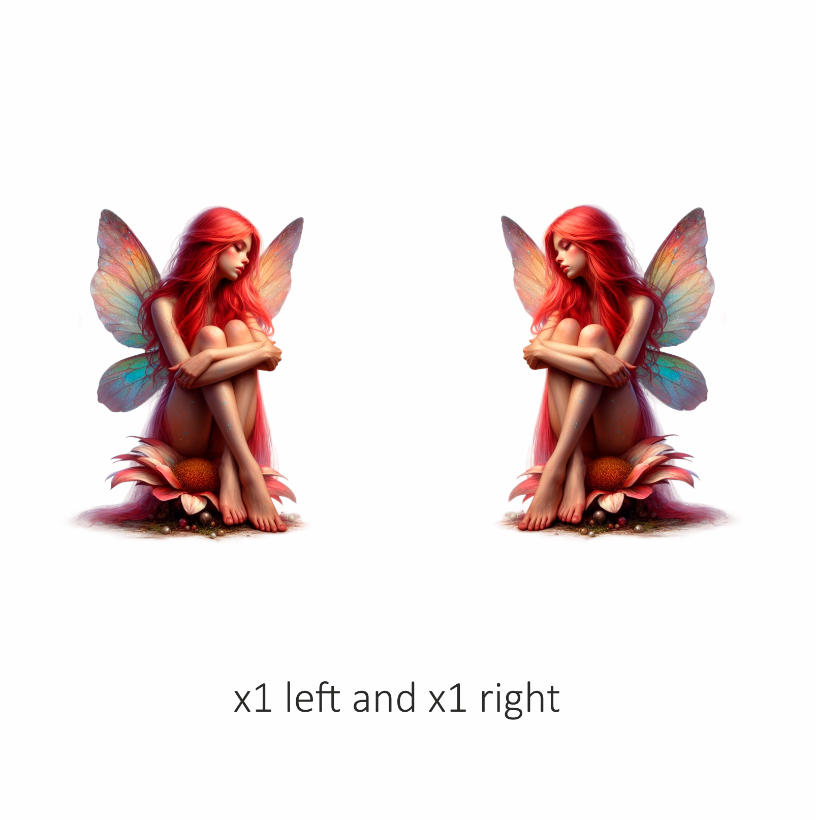 Red Fairy Sitting Flower Wings Vinyl Sticker Decal