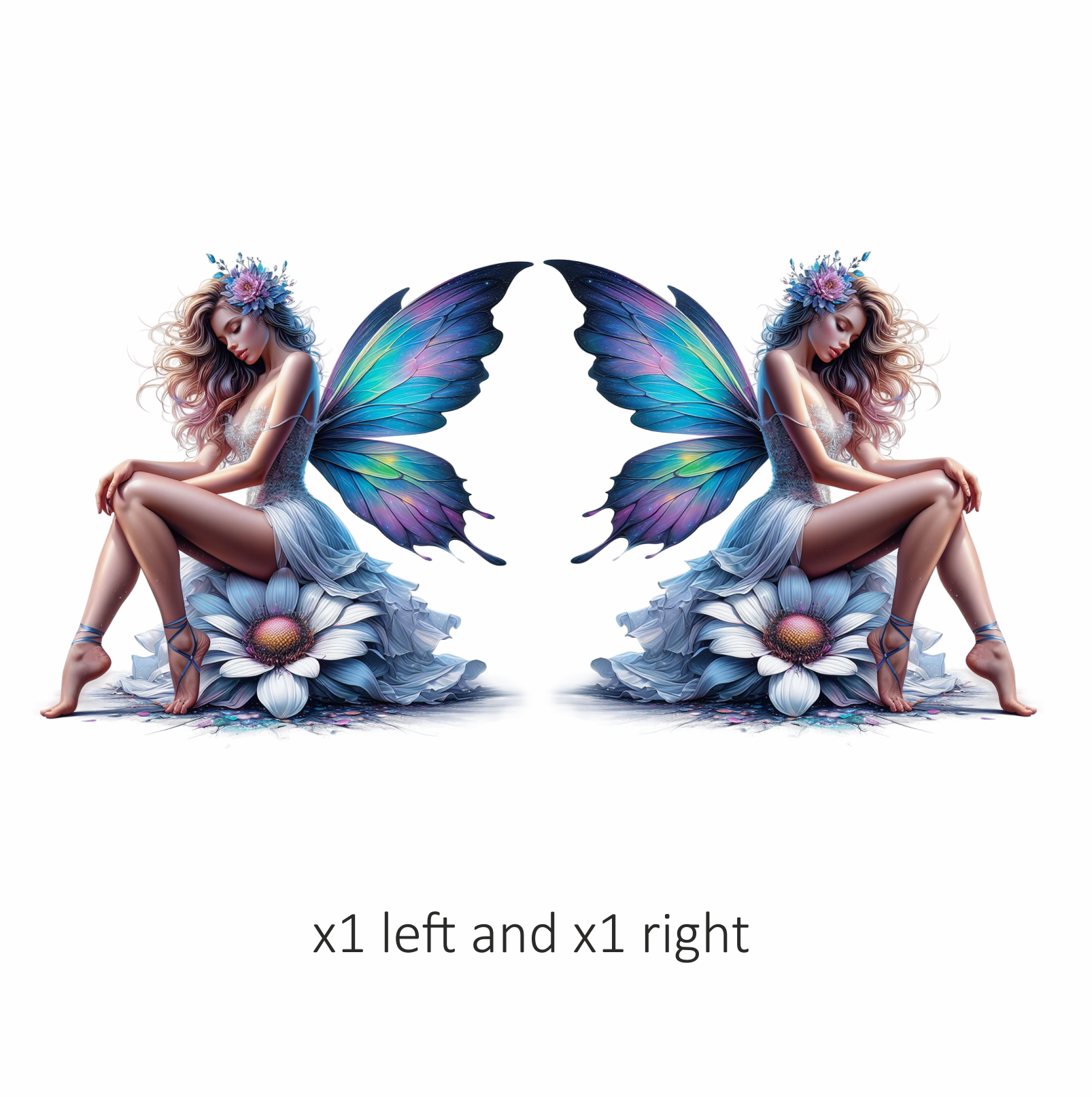Fairy Blue Wings Flower White Dress Vinyl Sticker Decal