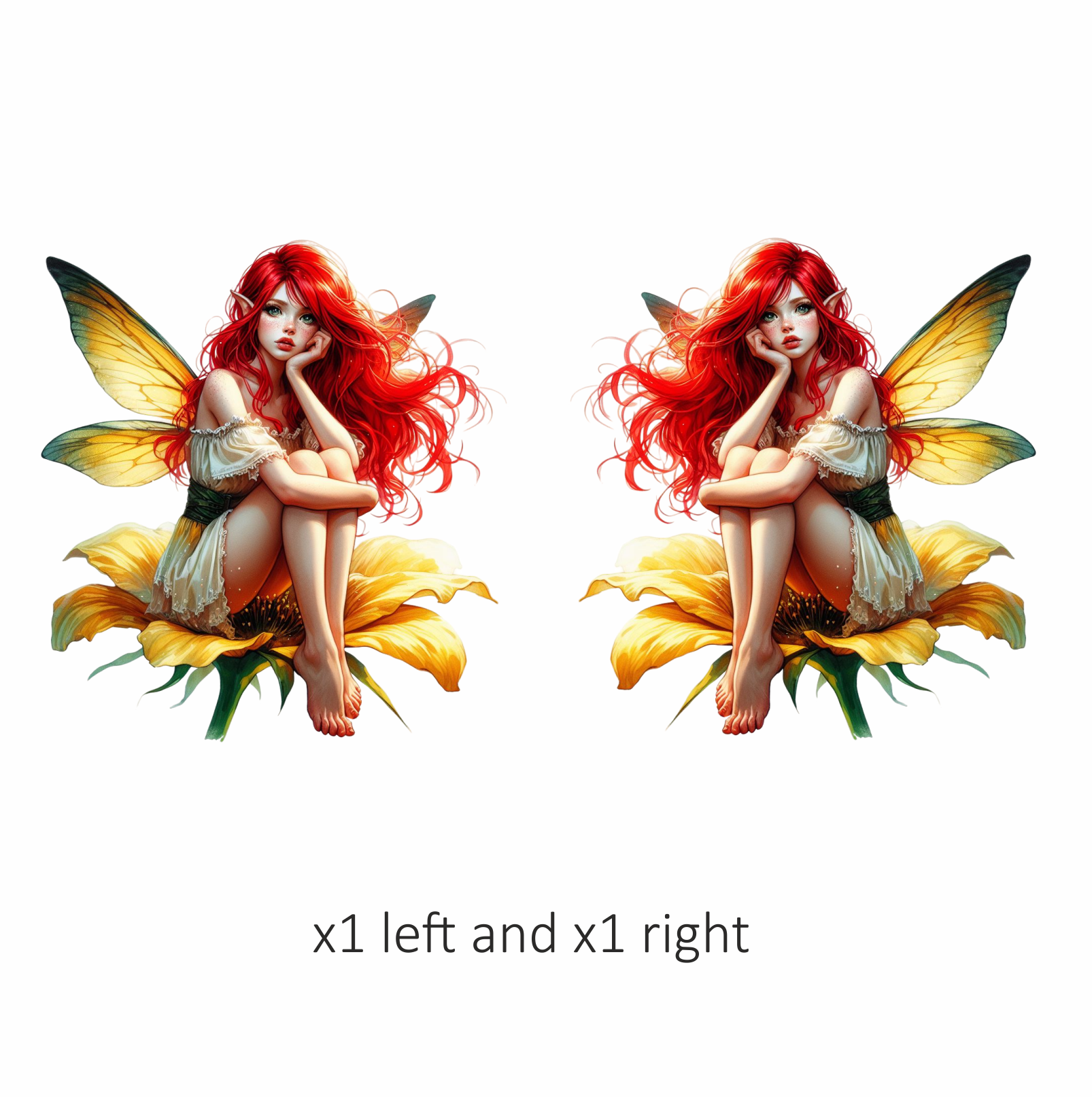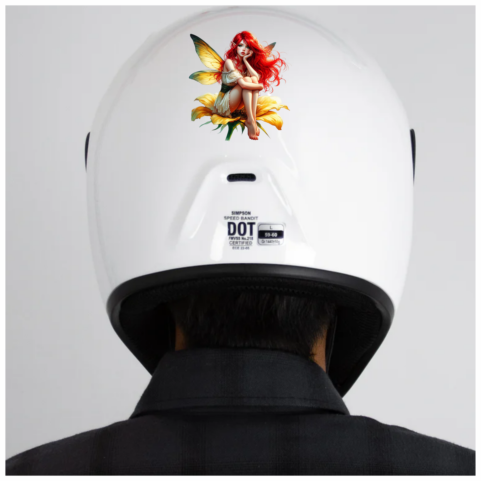 Red Fairy Yellow Flower Green Wings Vinyl Sticker Decal