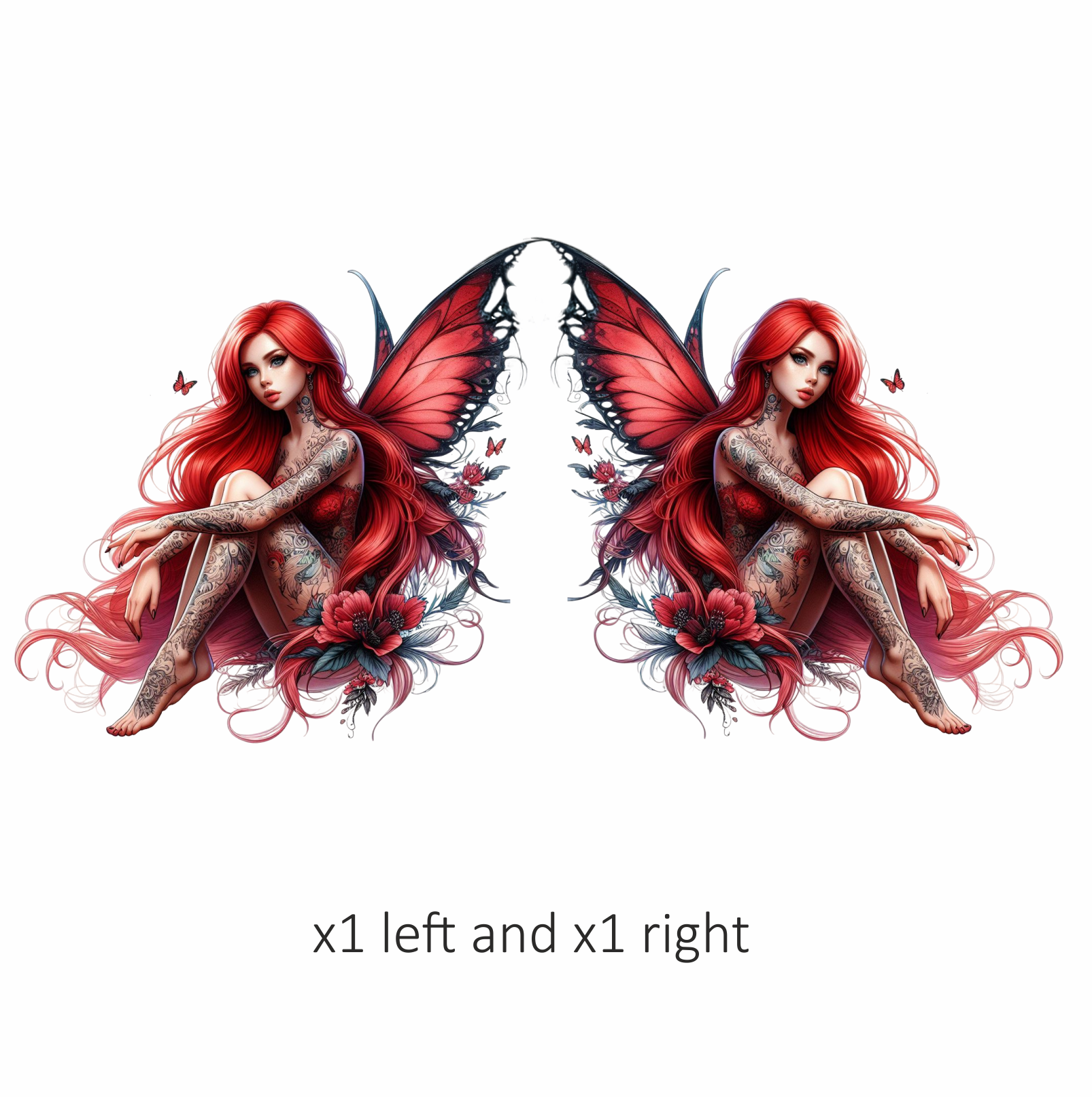 Red Fairy Wings Flowers Sitting Vinyl Sticker Decal