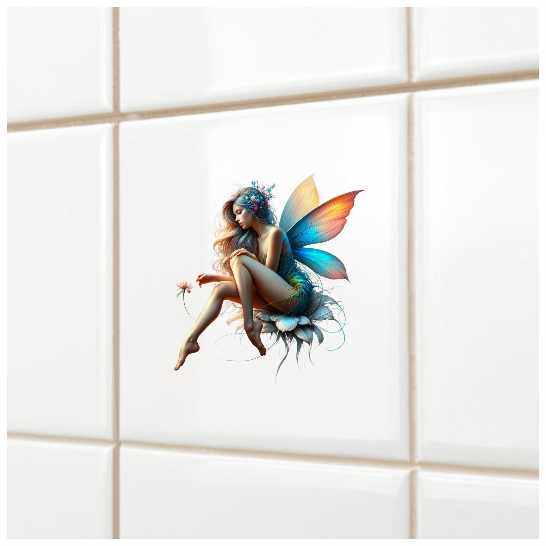 Fairy Woman Blue Wings Flower Vinyl Sticker Decal