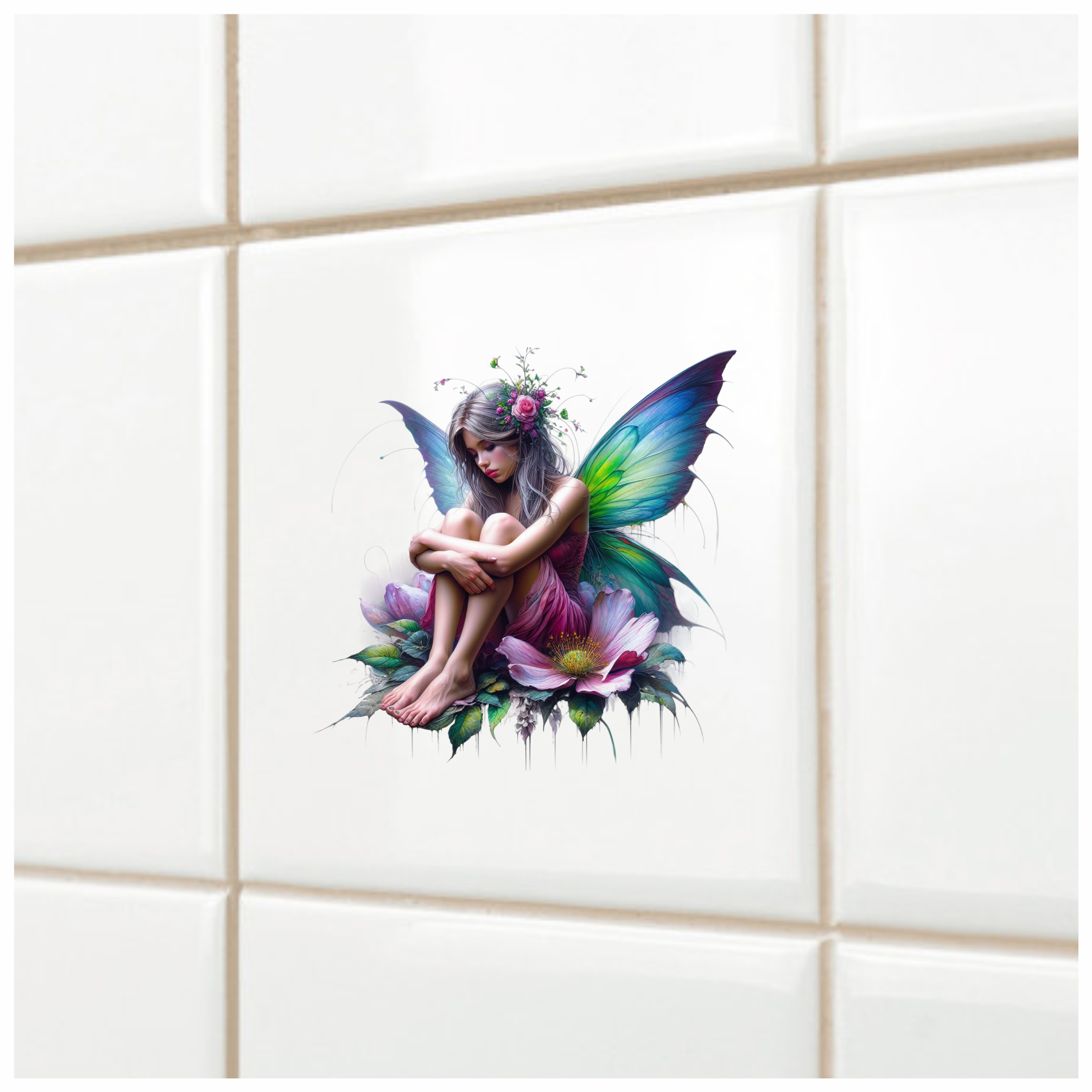 Fairy Girl Pink Wings Flowers Vinyl Sticker Decal