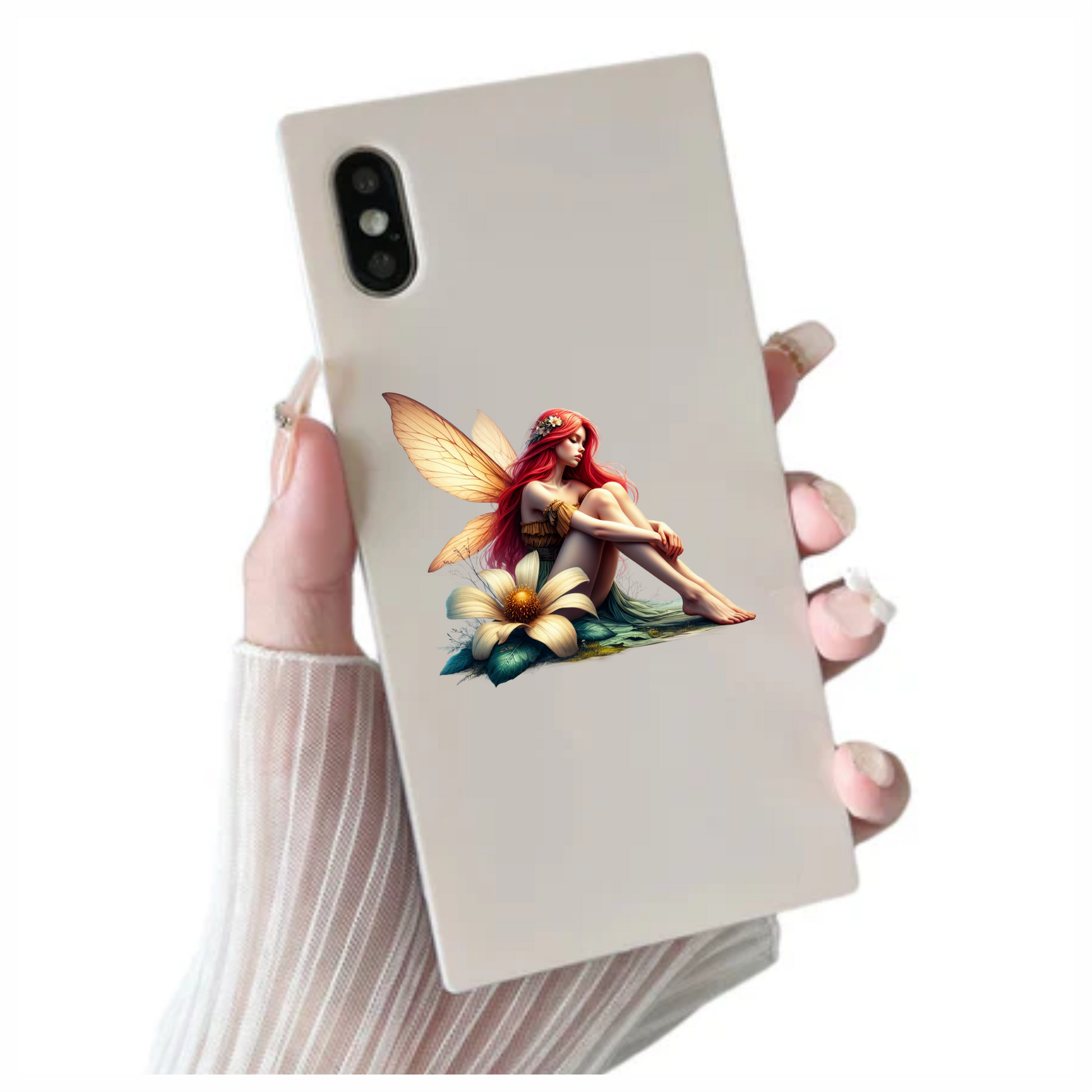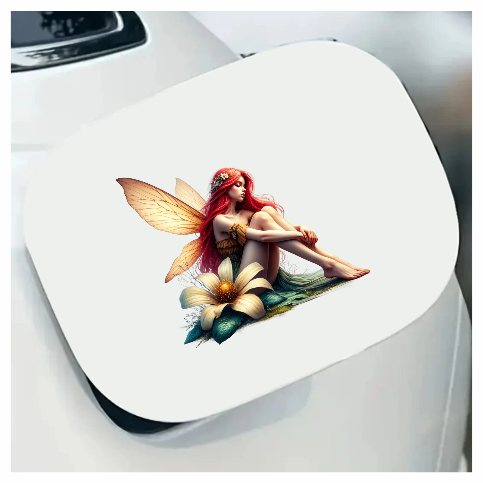 Fairy Red Wings Flower Sitting Vinyl Sticker Decal