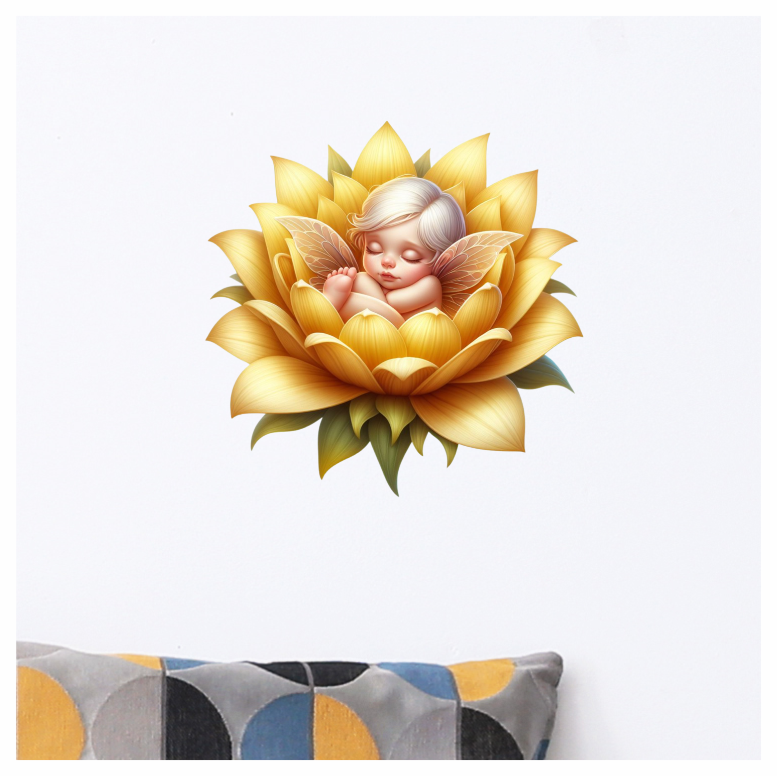 Baby Fairy Sleeping Yellow Flower Vinyl Sticker Decal
