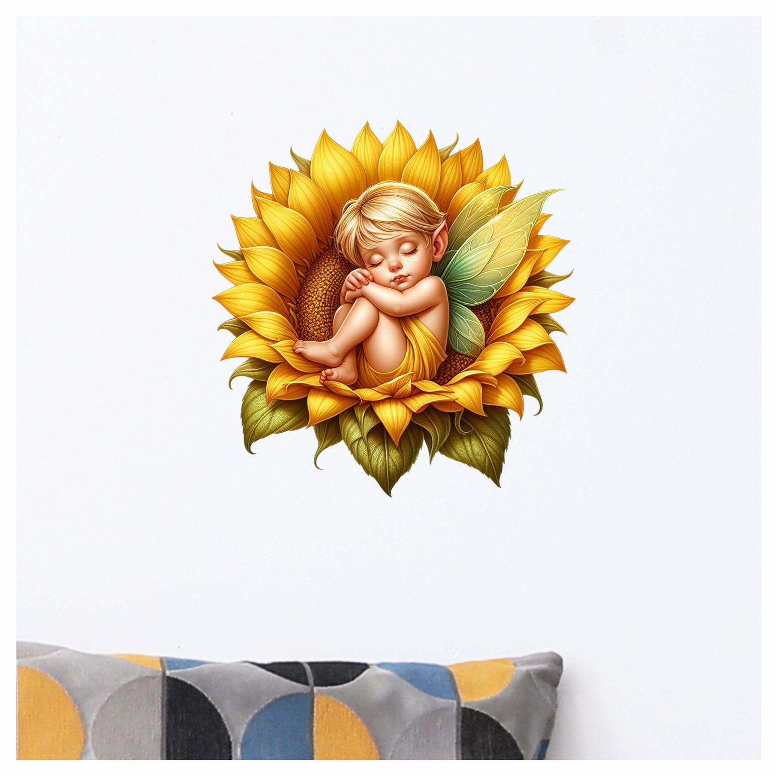 Yellow Fairy Baby Sleeping Sunflower Vinyl Sticker Decal