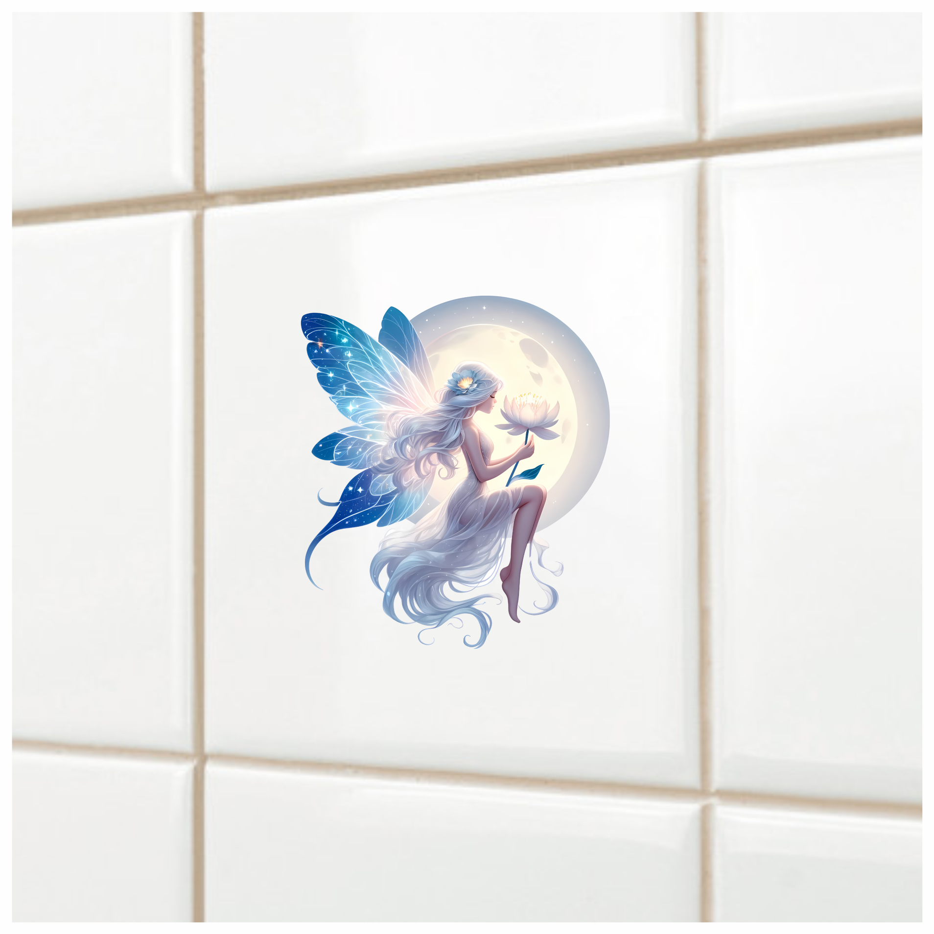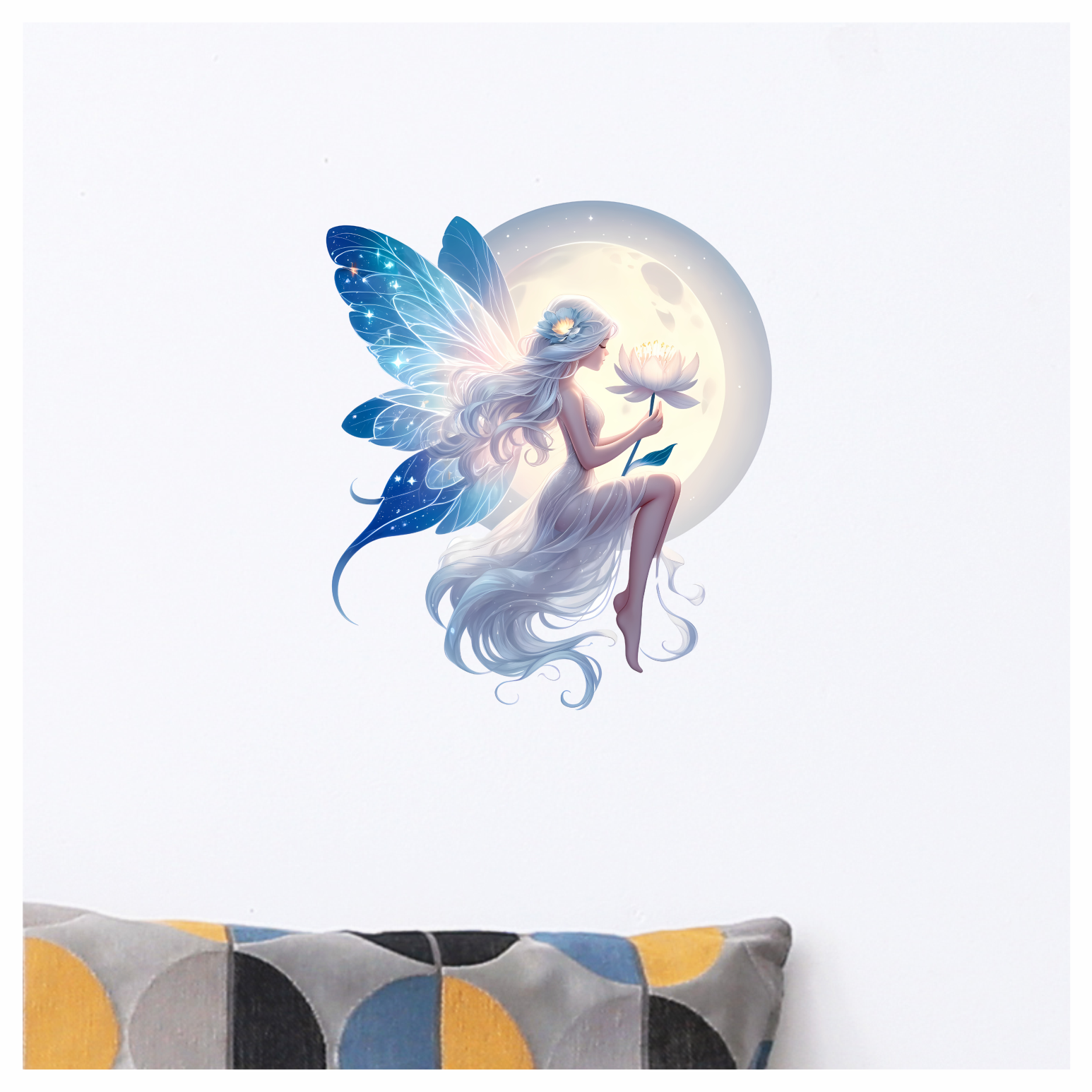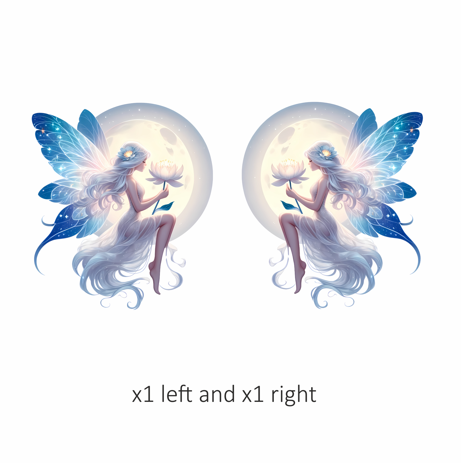 Fairy Moon White Flower Blue Wings Vinyl Sticker Decal