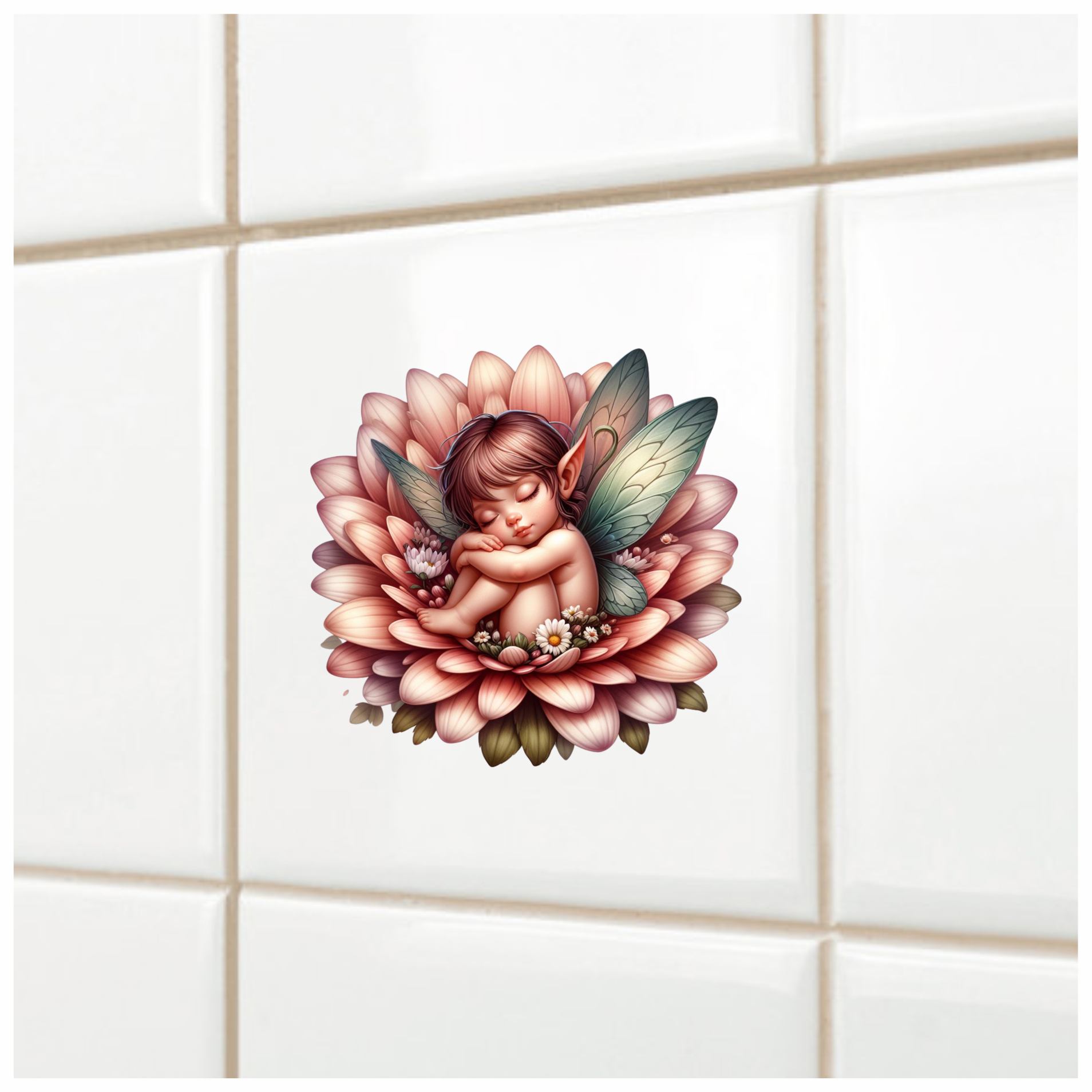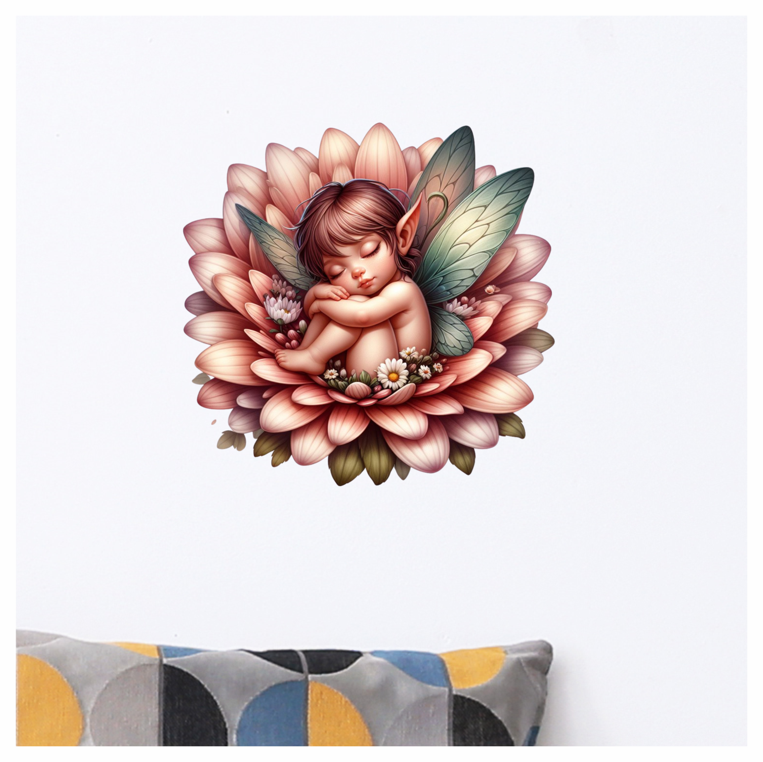 Pink Fairy Child Sleeping Flower Vinyl Sticker Decal