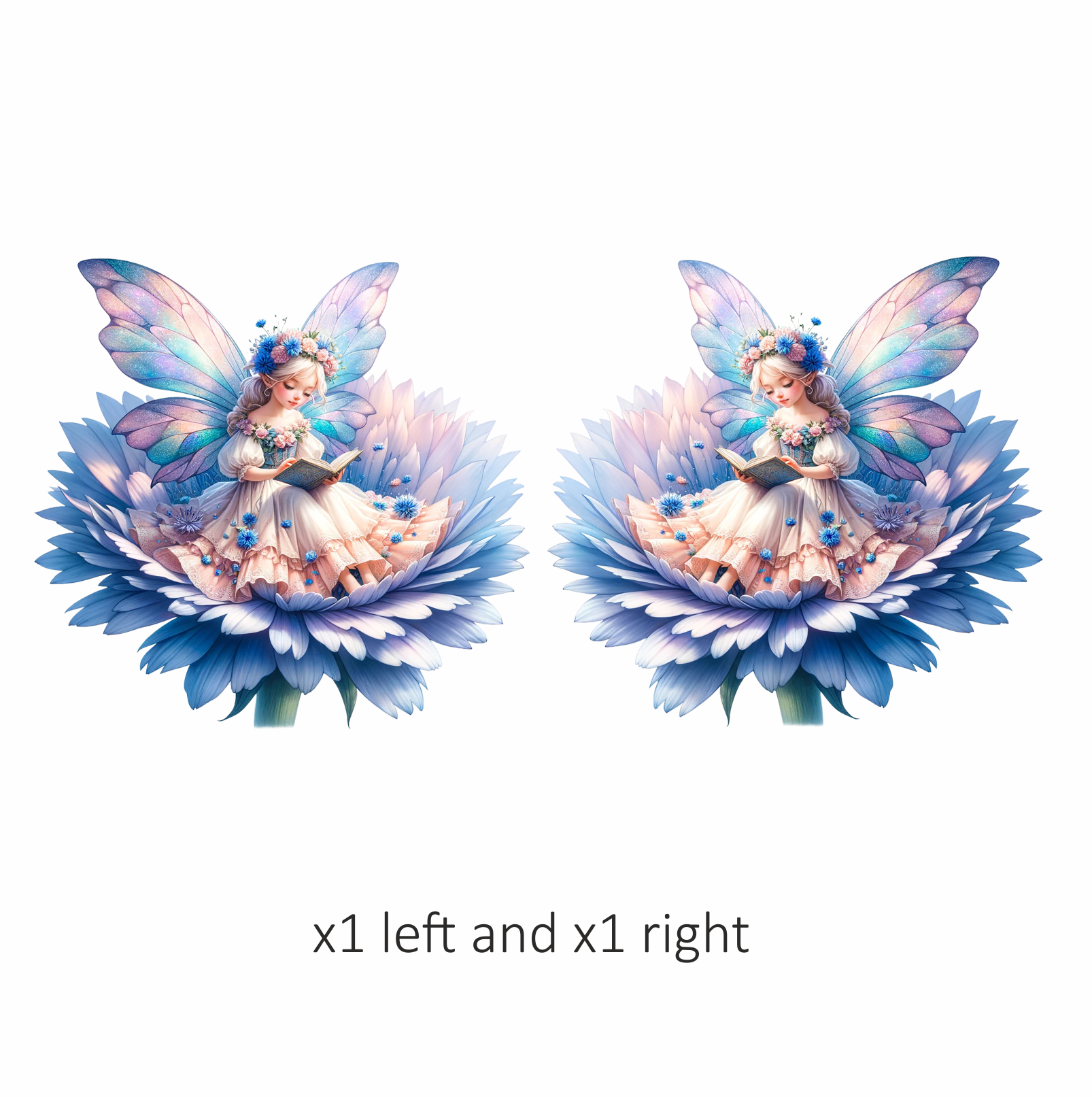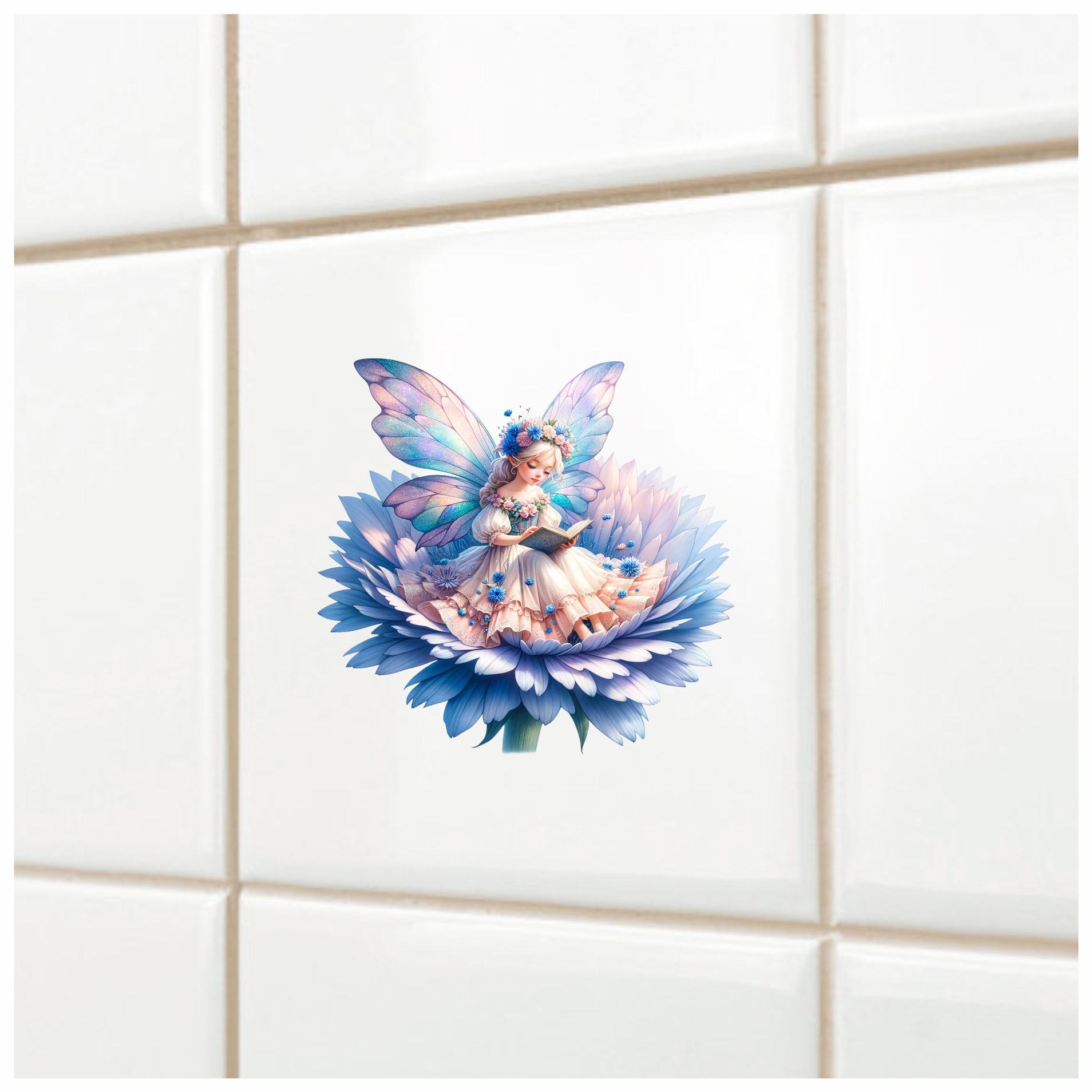 Fairy Reading Blue Flower Book Vinyl Sticker Decal