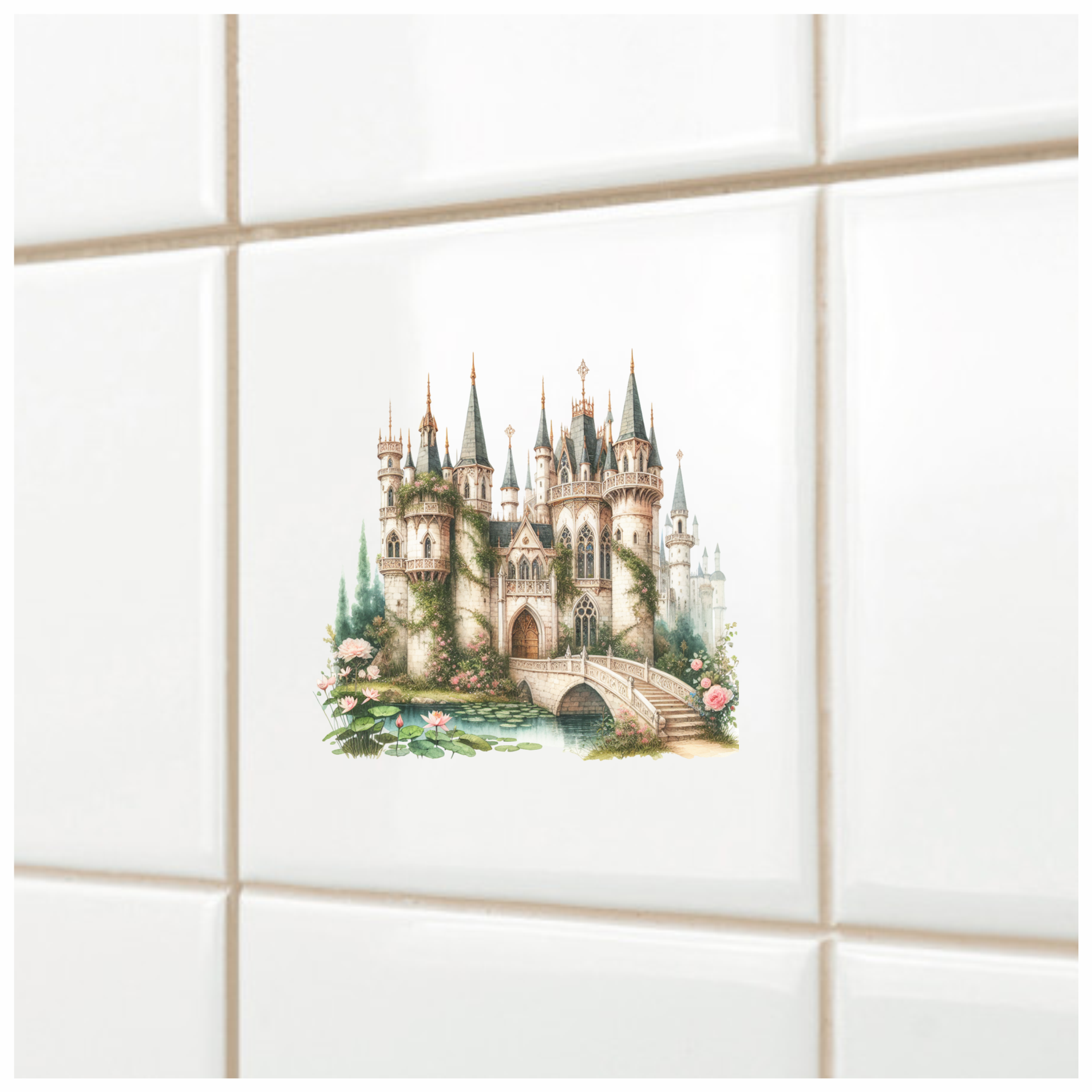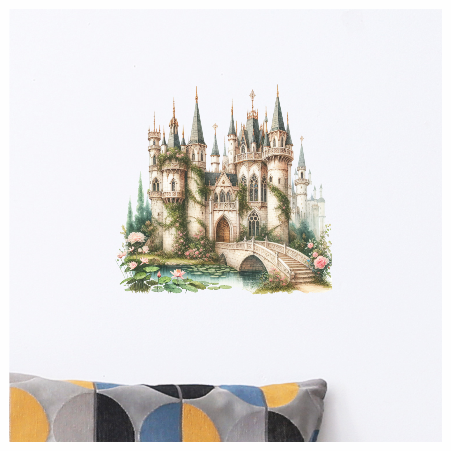 Castle Stone Green Water Flowers Bridge Vinyl Sticker Decal