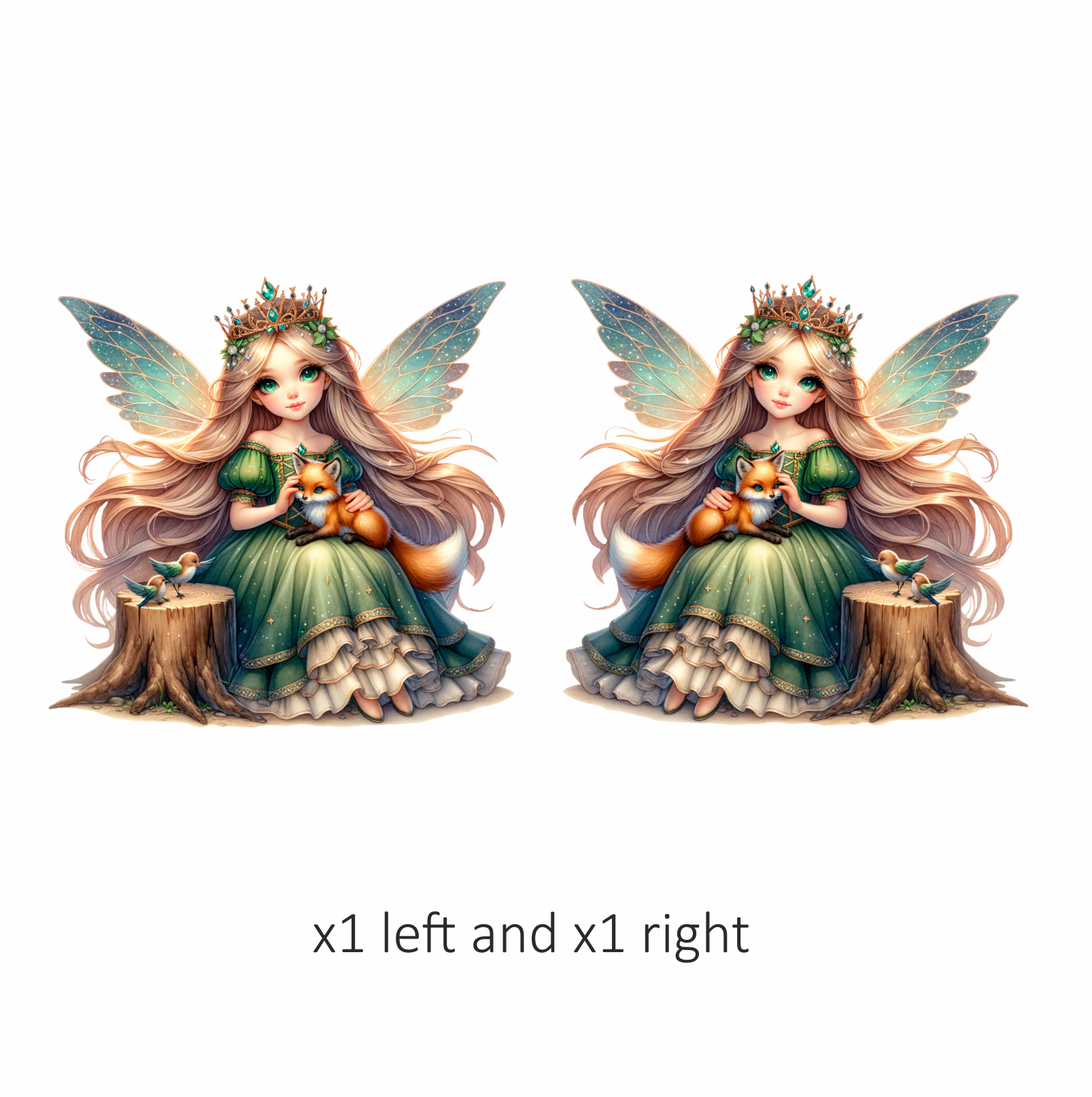 Fairy Green Dress Fox Birds Vinyl Sticker Decal