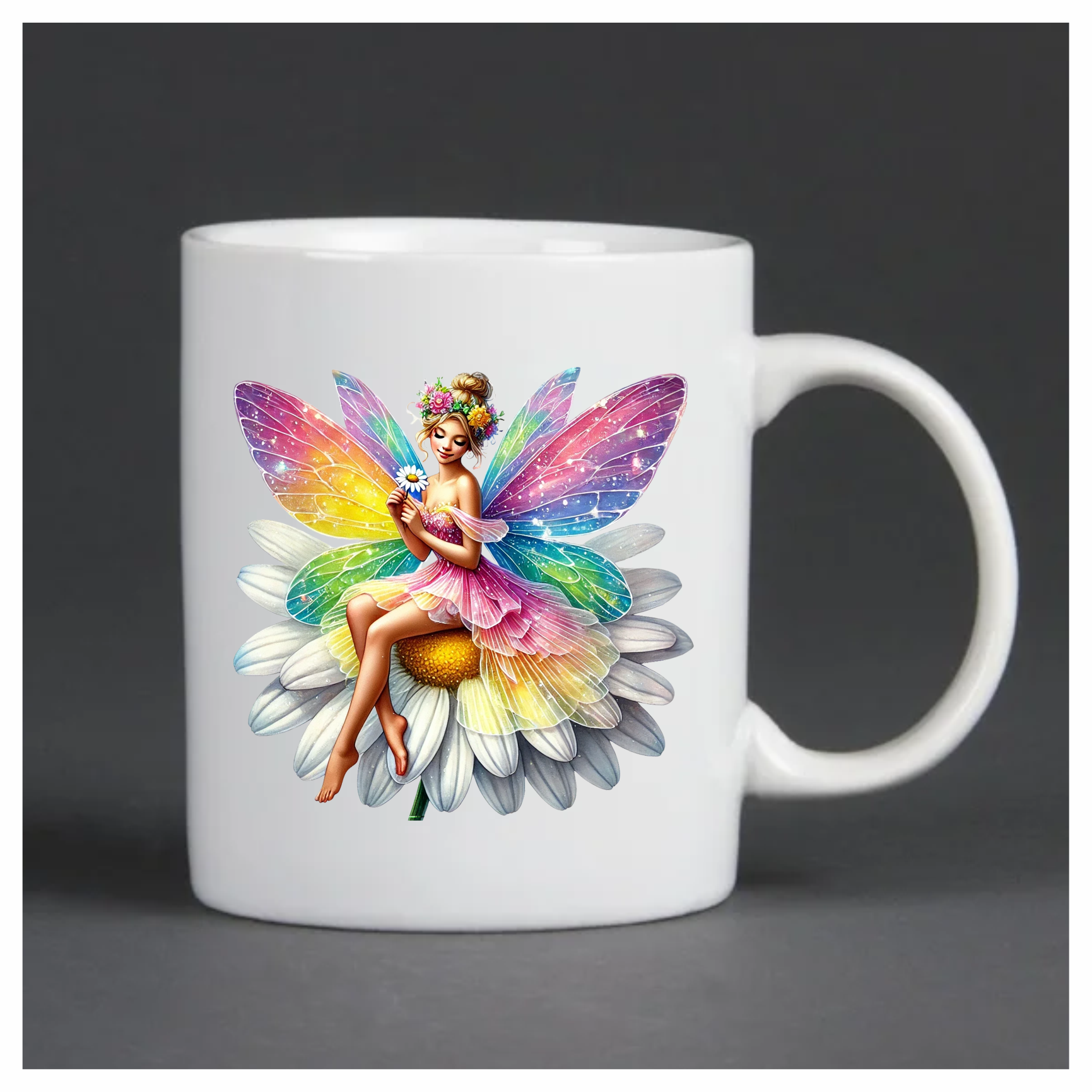 Fairy Rainbow Flower Sitting Daisy Vinyl Sticker Decal