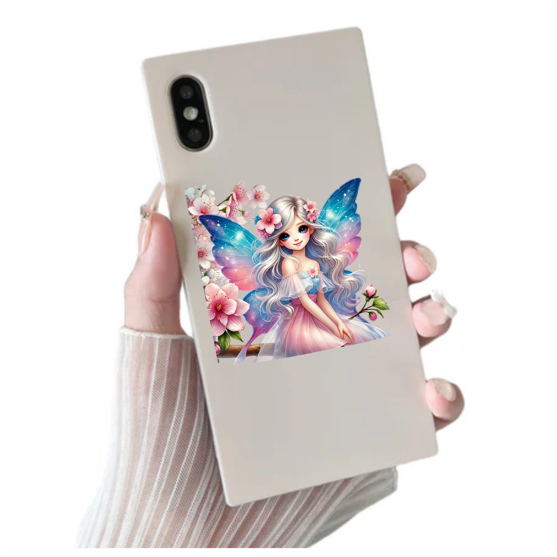 Blue Pink Fairy Girl Flowers Vinyl Sticker Decal