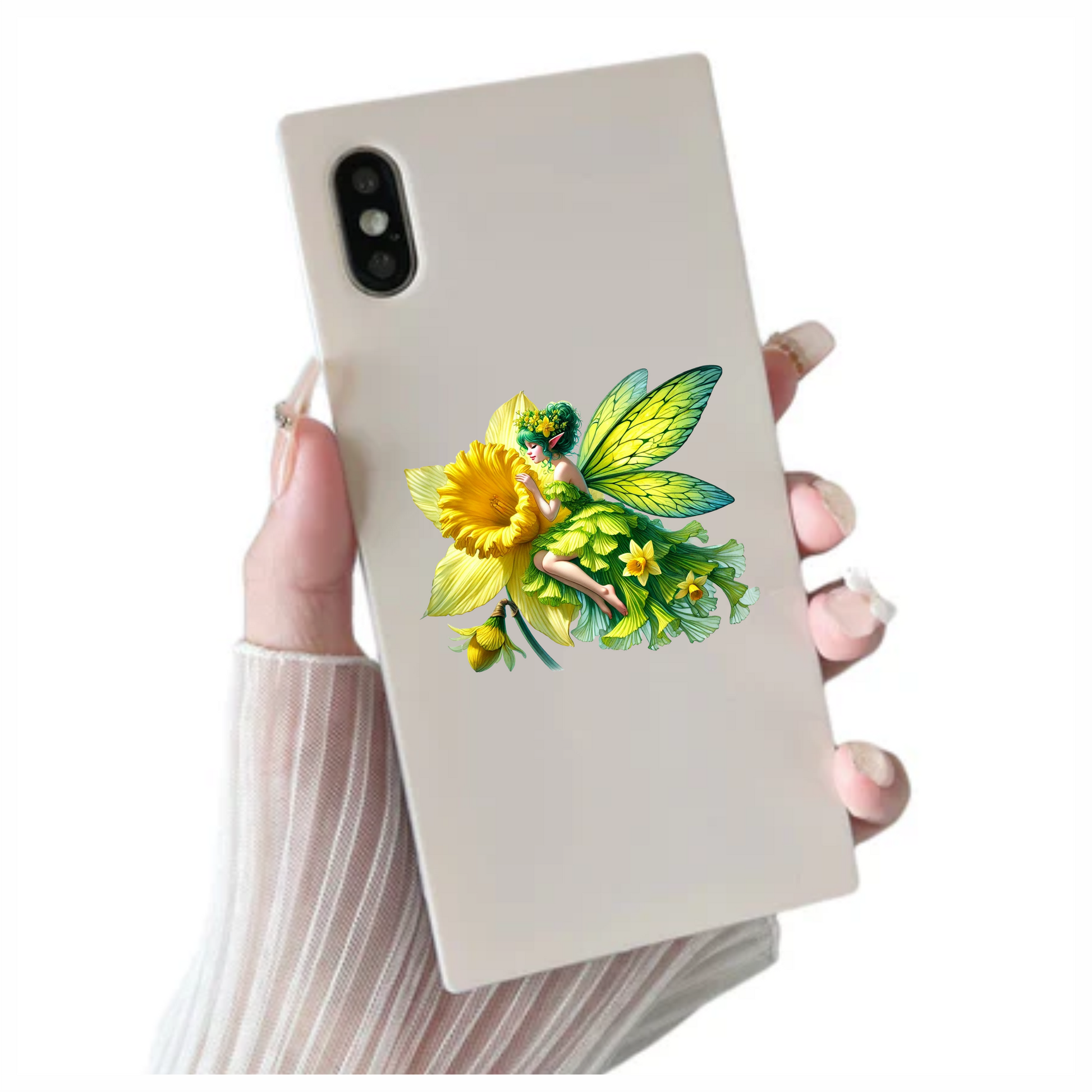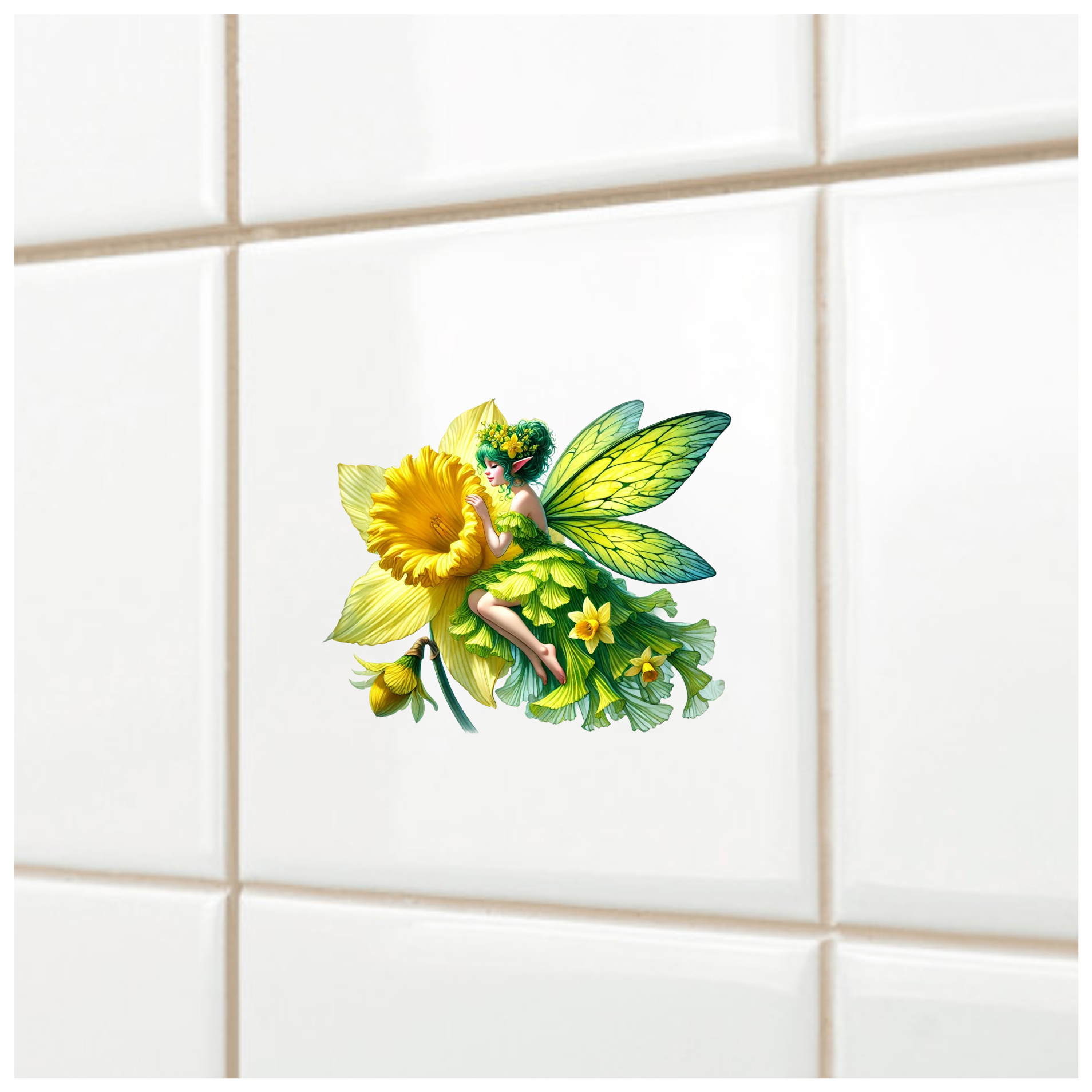 Fairy Green Yellow Flower Wings Vinyl Sticker Decal