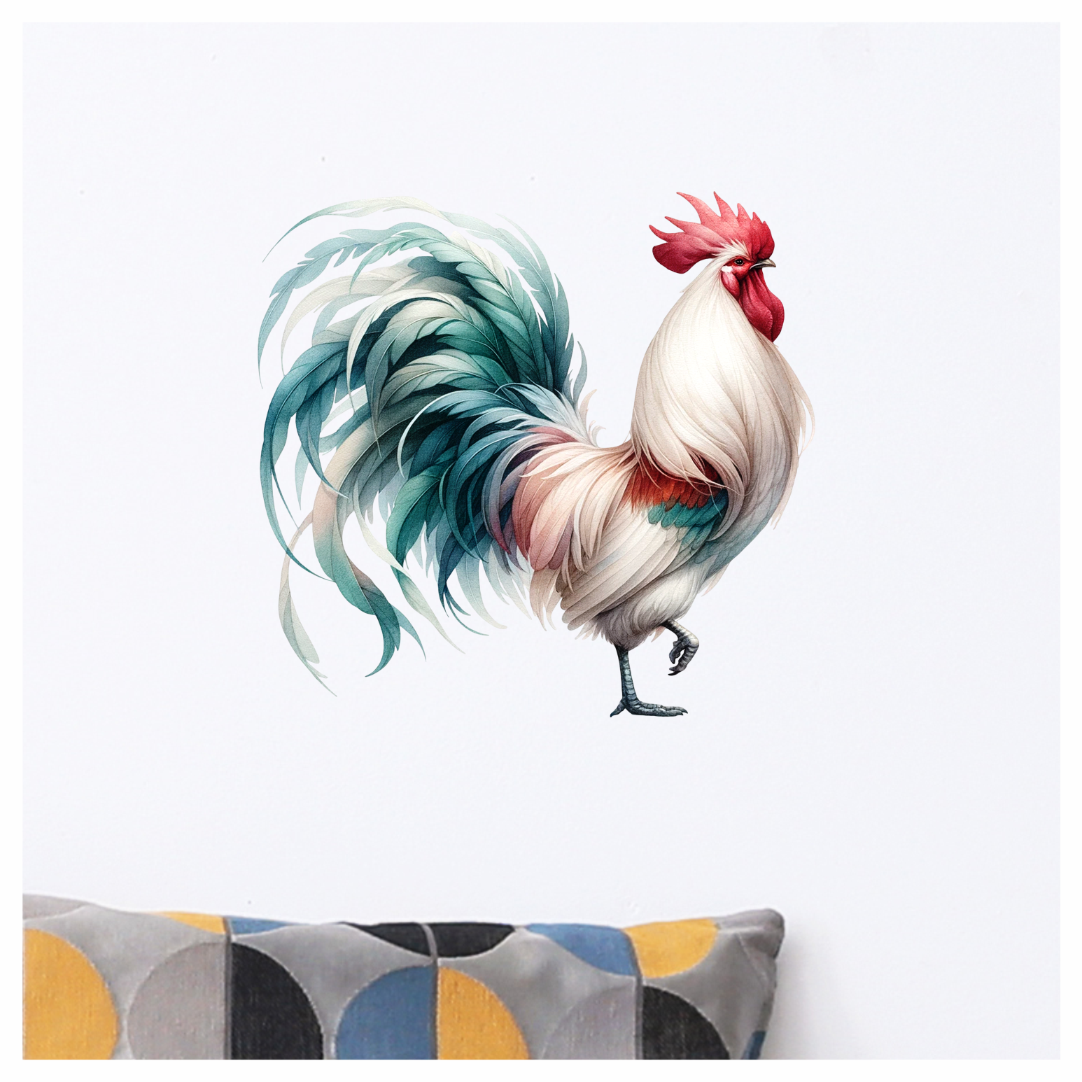 White Red Blue Rooster Farm Vinyl Sticker Decal