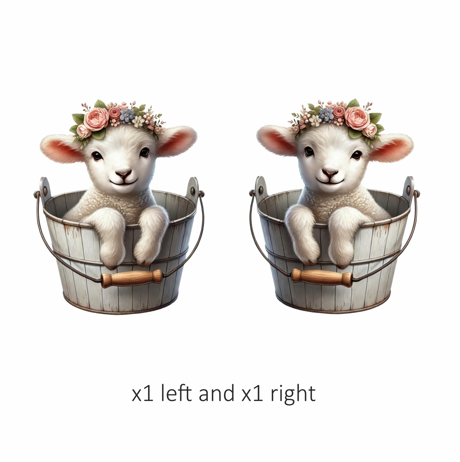 White Lamb Flower Crown Bucket Vinyl Sticker Decal
