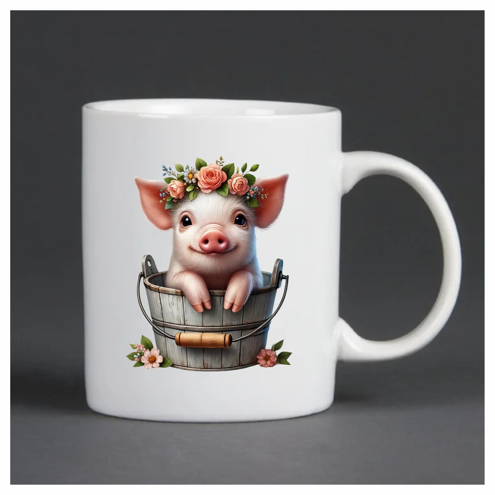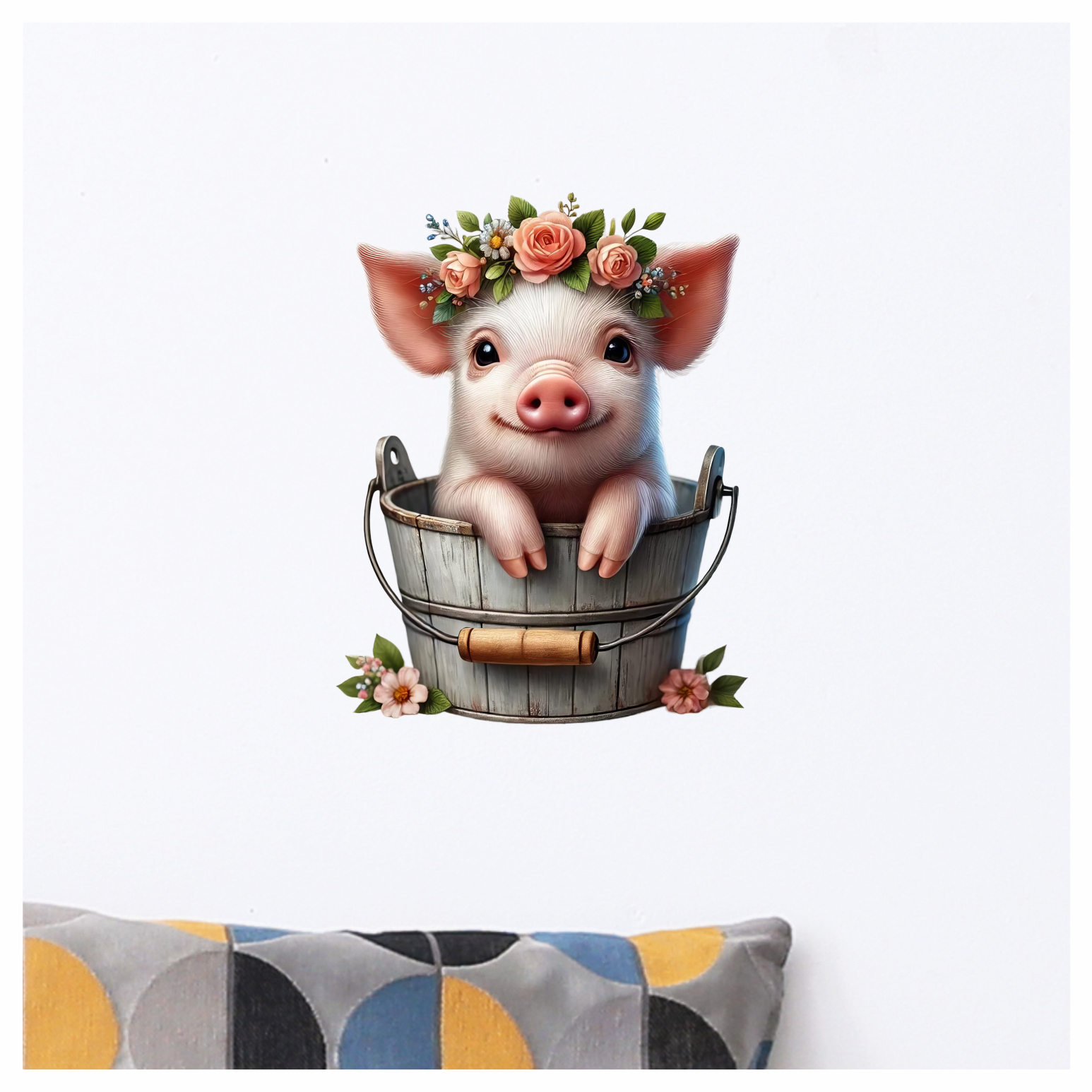 Pink Piglet Flower Bucket Cute Vinyl Sticker Decal