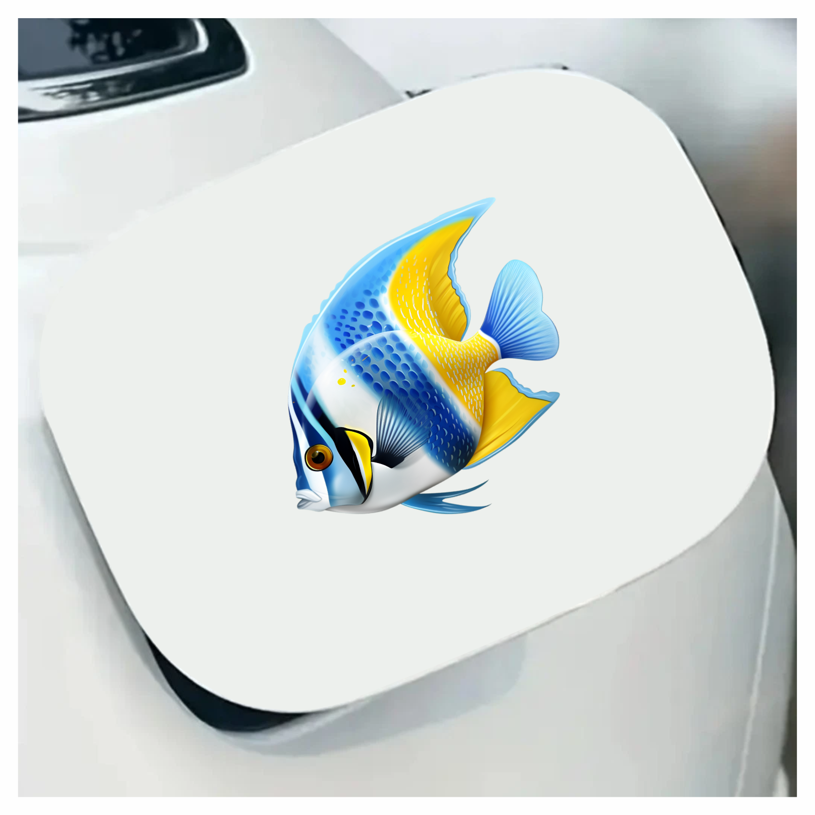Blue Yellow Striped Tropical Fish Vinyl Sticker Decal