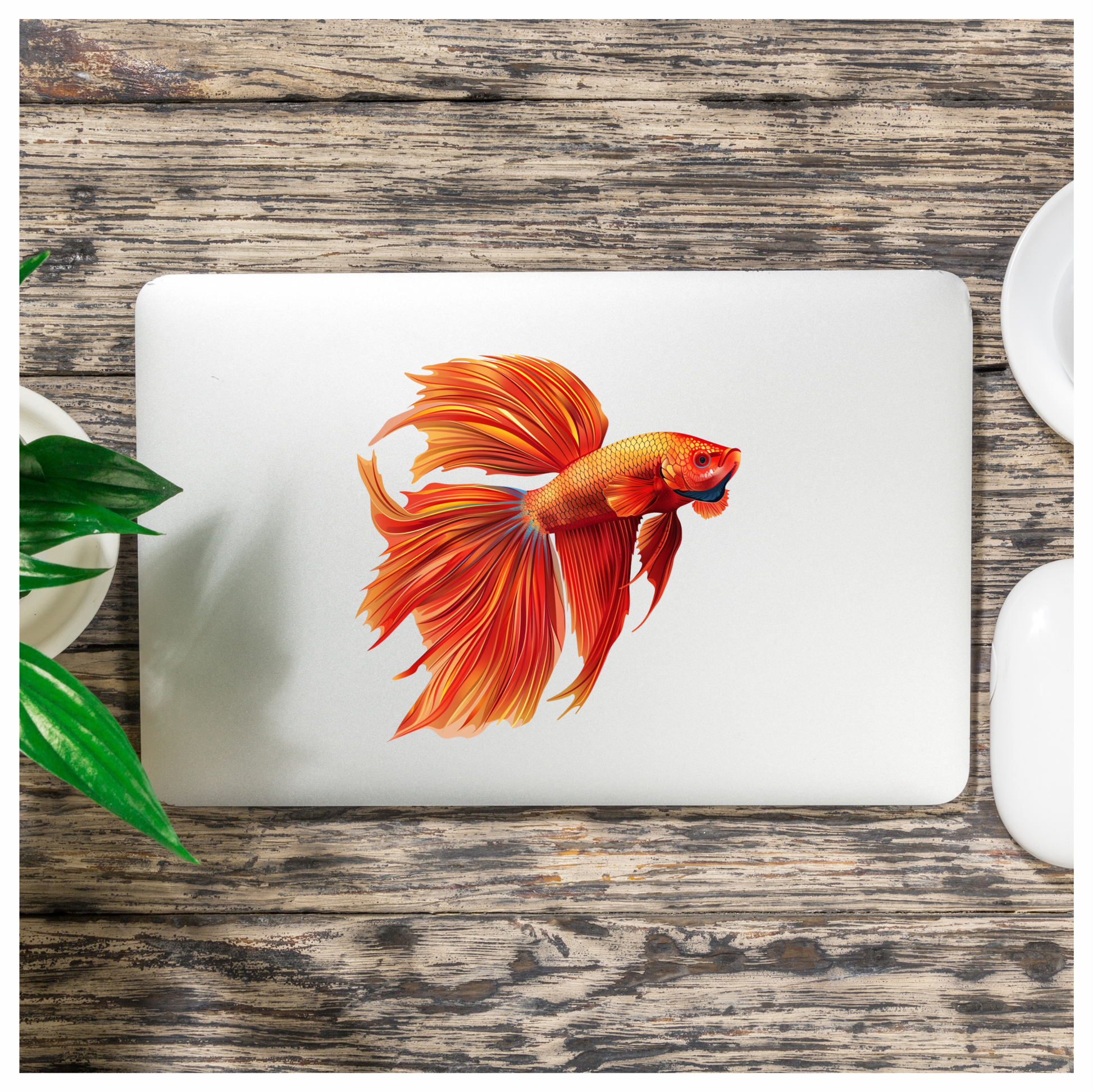 Red Betta Fish Long Fins Vinyl Sticker Decal