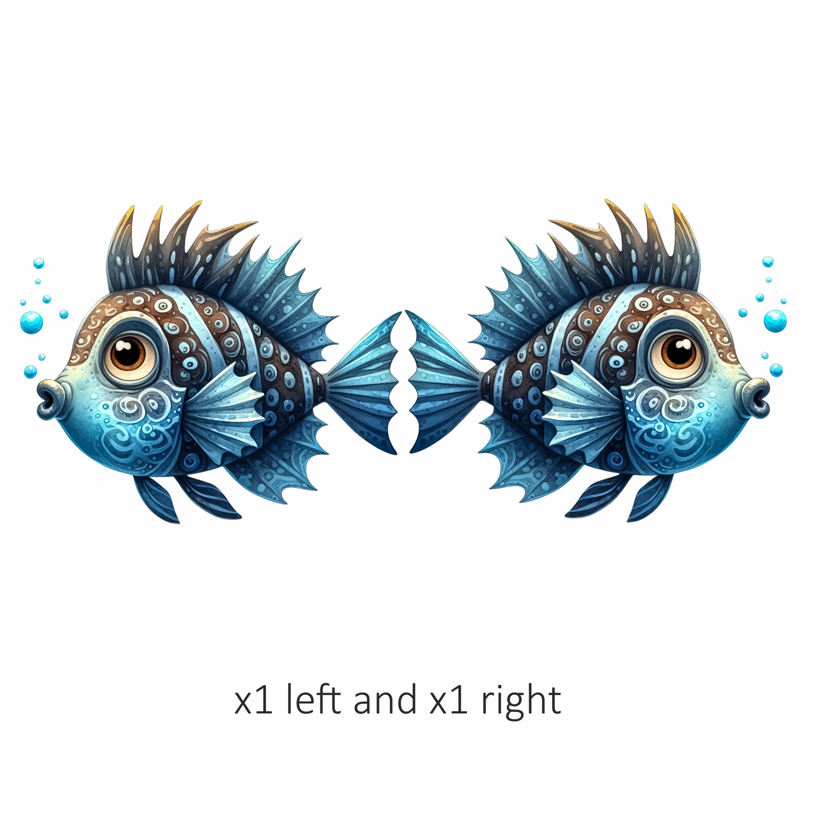Blue Cartoon Fish With Bubbles Vinyl Sticker Decal