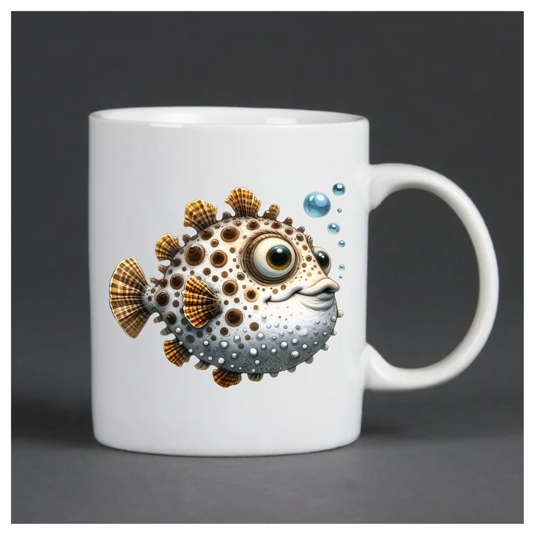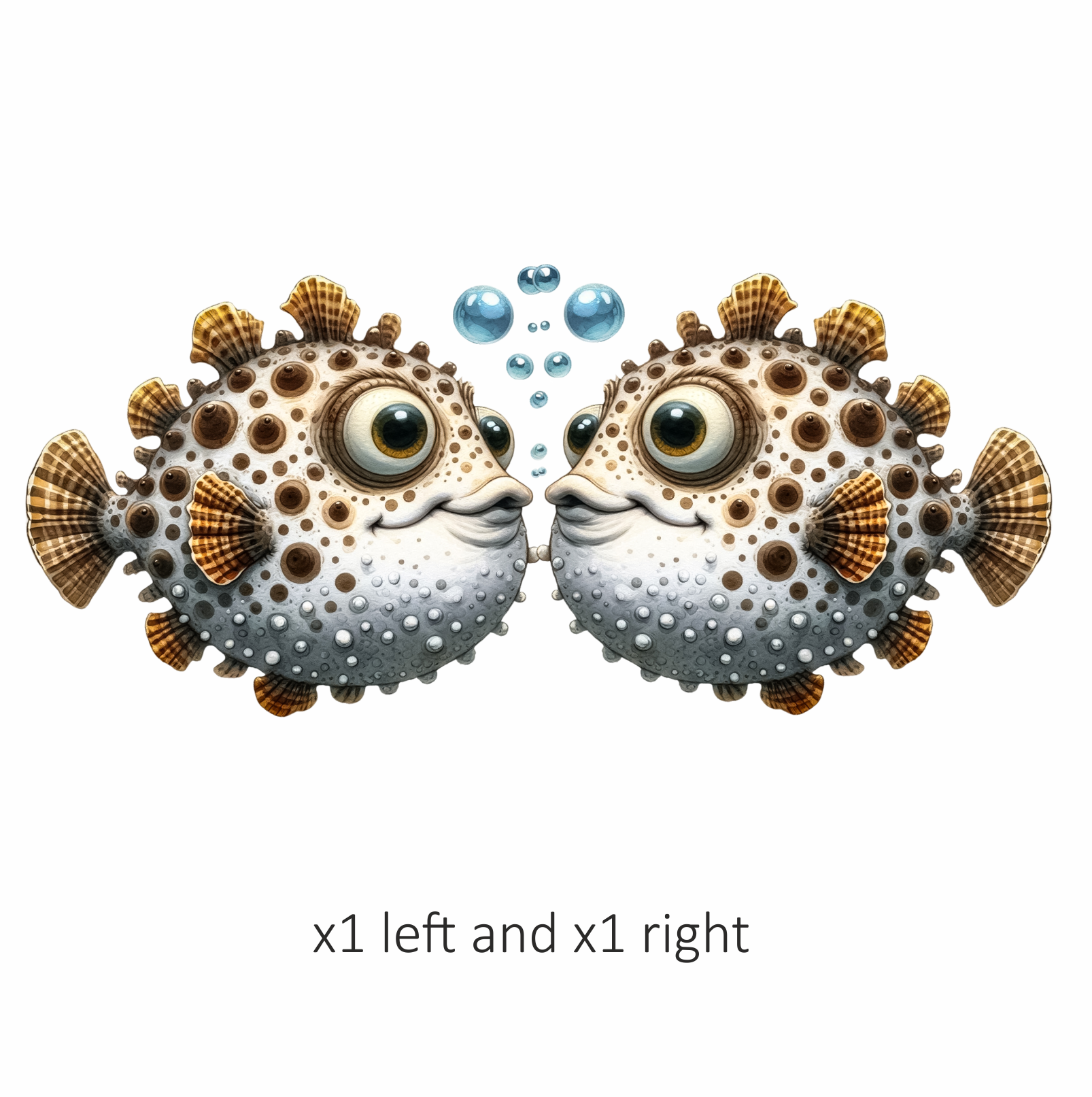 Brown Spotted Cartoon Puffer Fish Vinyl Sticker Decal
