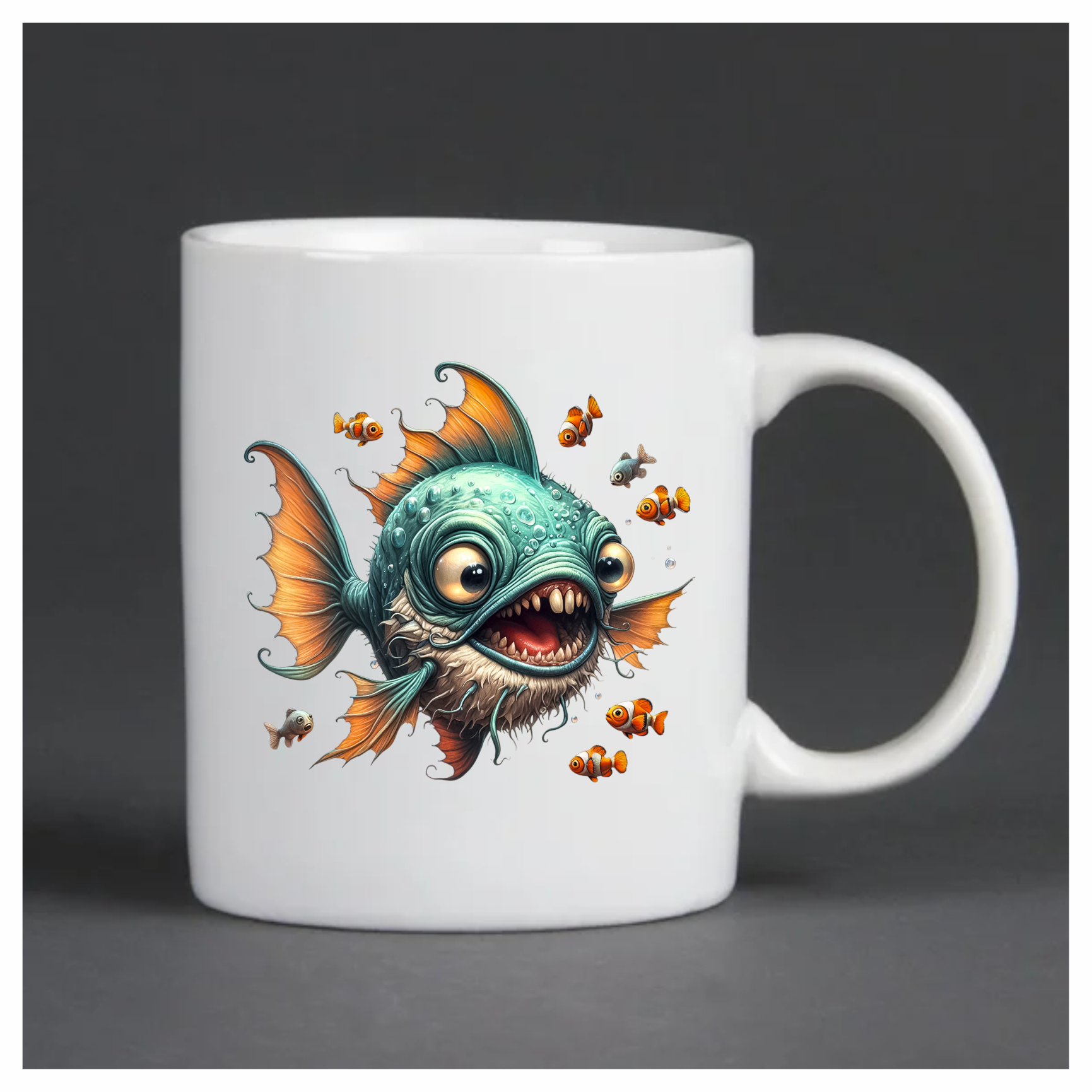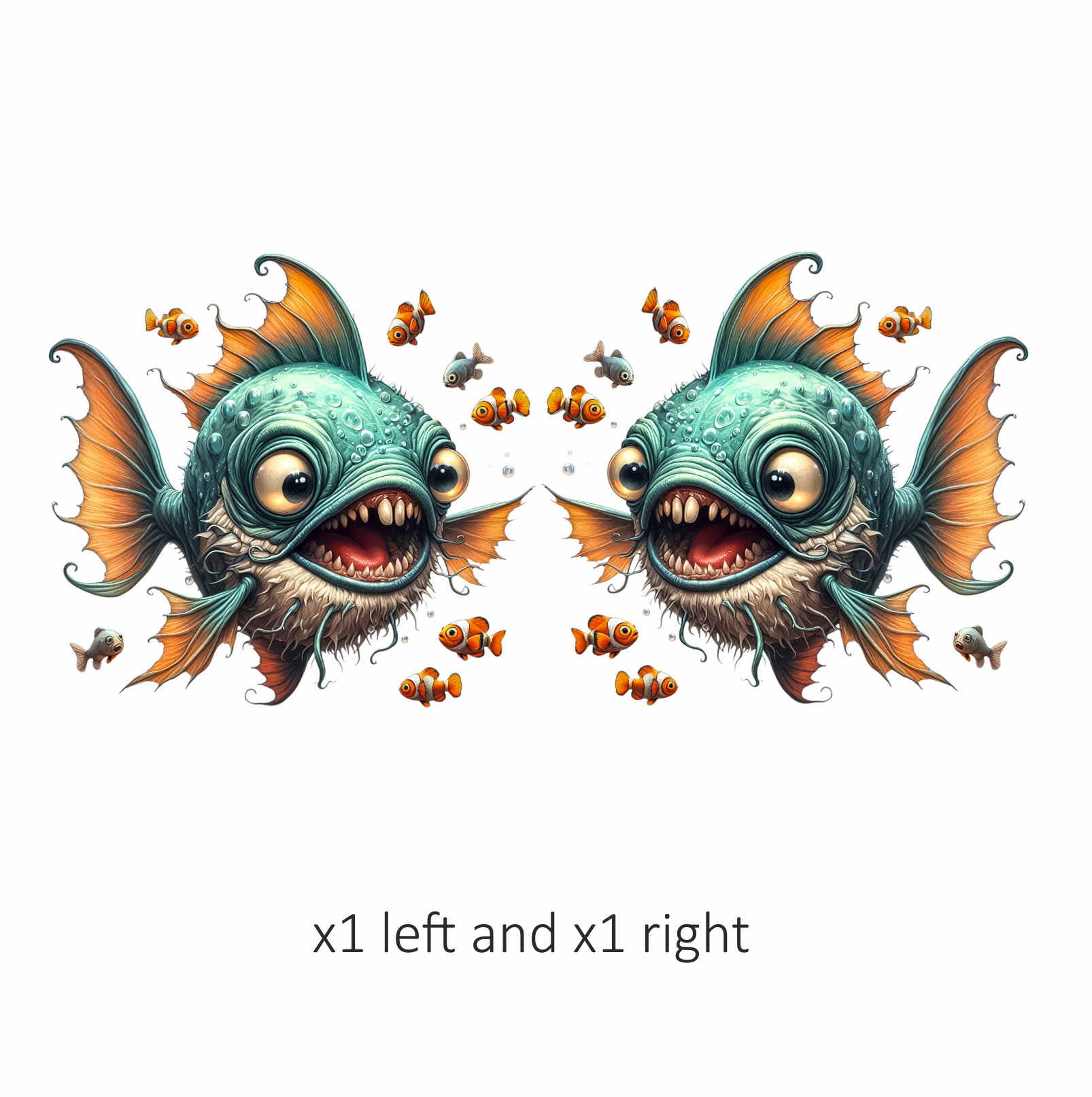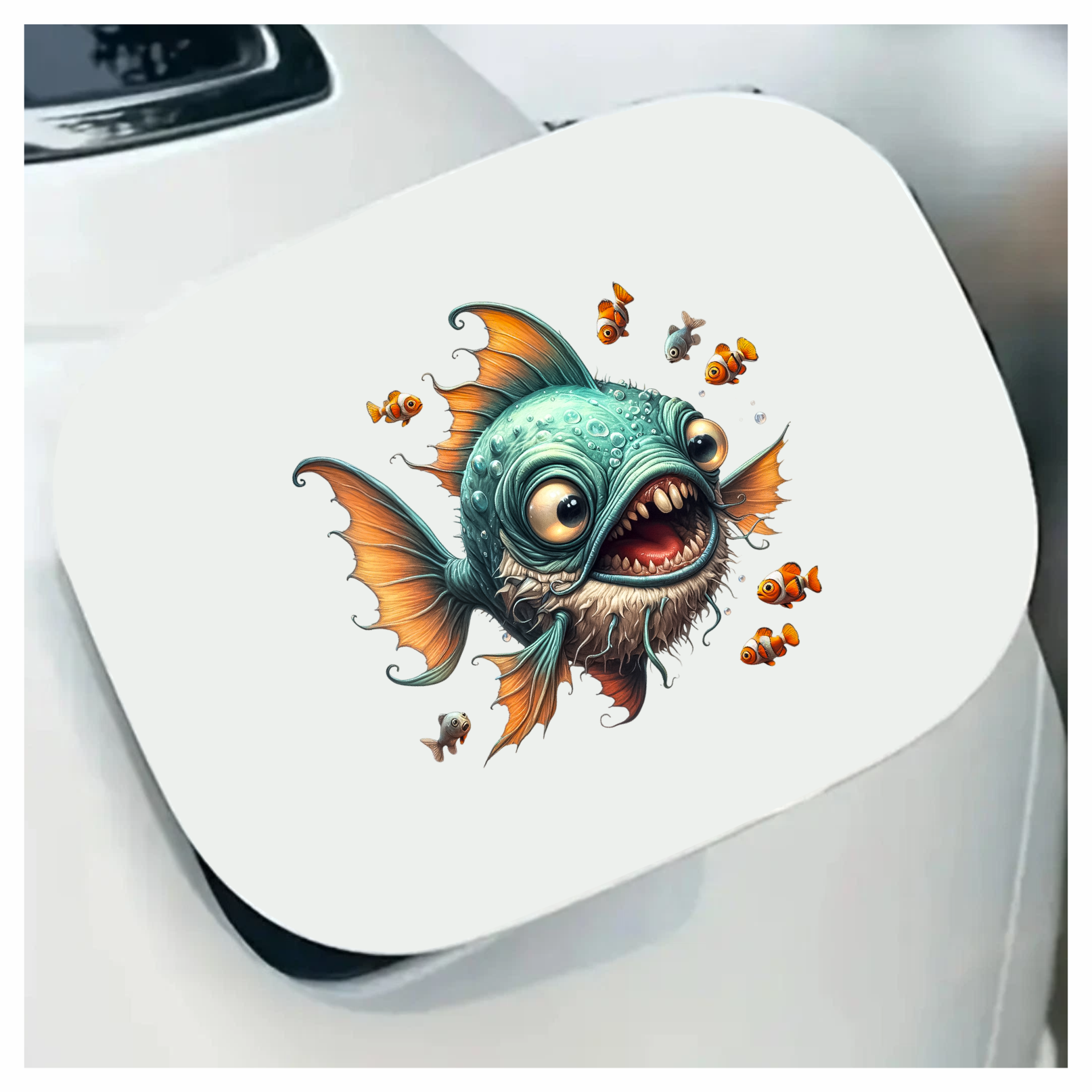 Blue Fish Big Teeth Clownfish Surrounding Vinyl Sticker Decal
