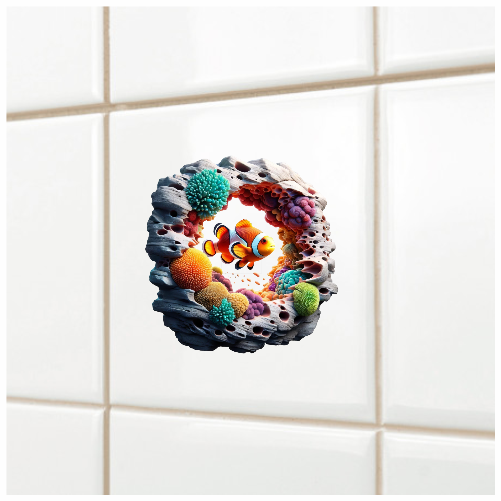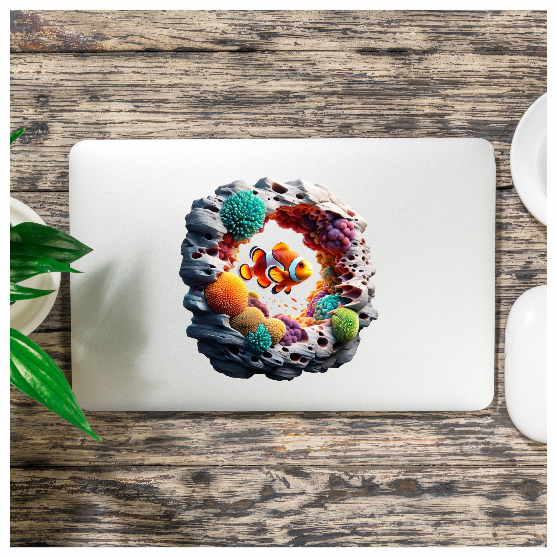 Orange Clownfish Coral Reef Hole Vinyl Sticker Decal