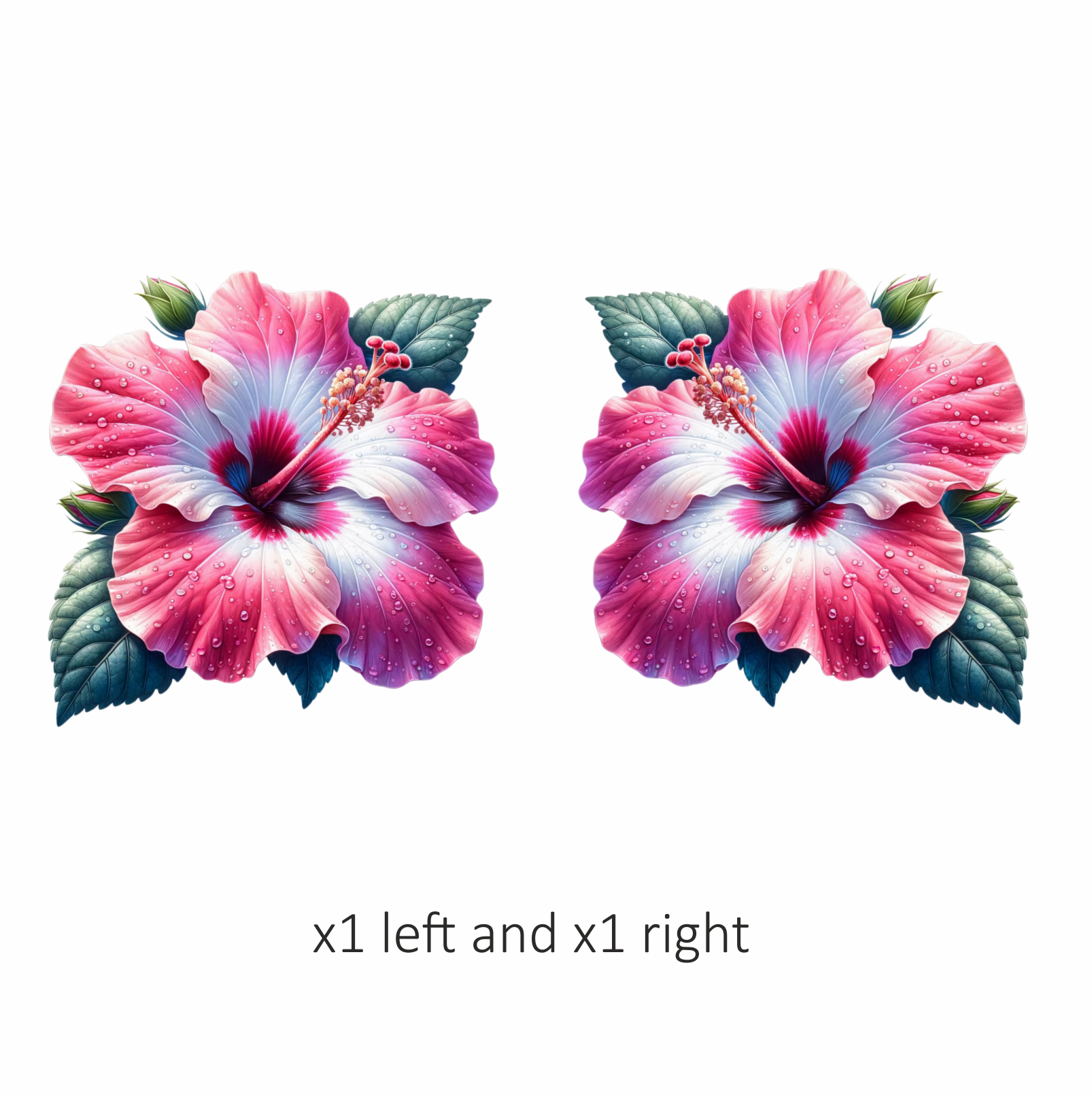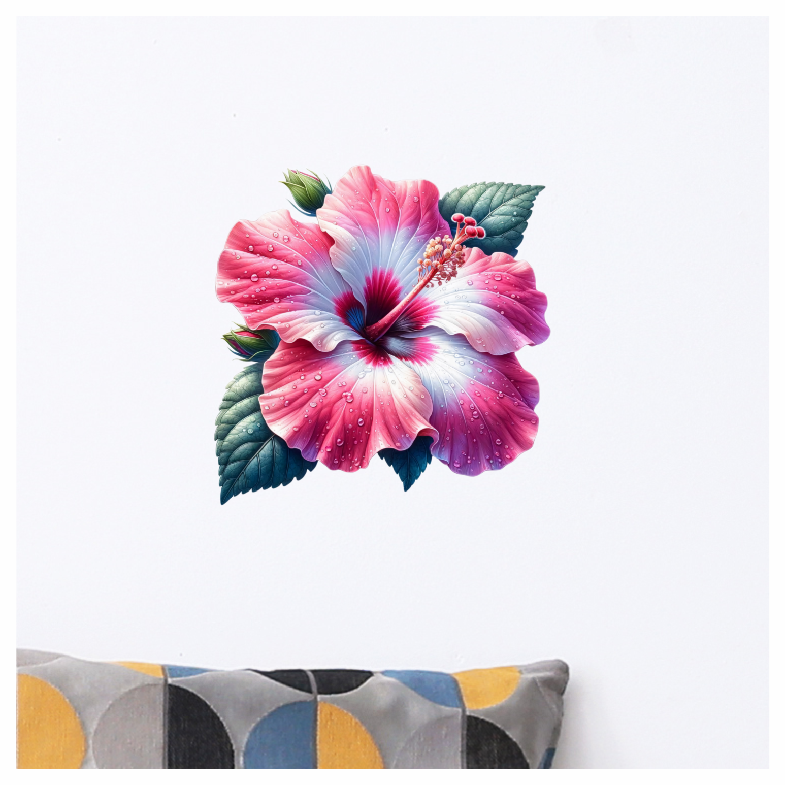 Pink White Hibiscus Flower Leaves Vinyl Sticker Decal